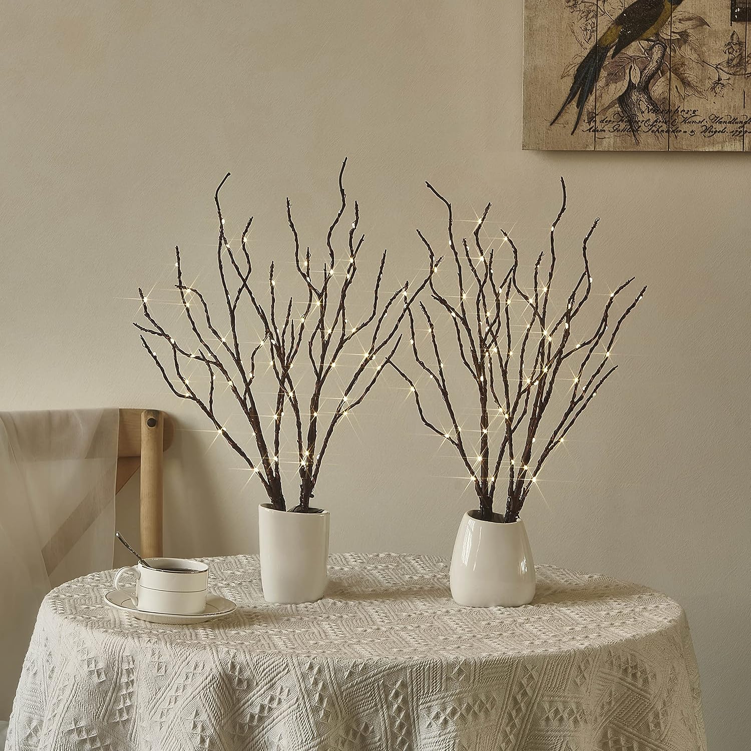 - 【LIFELIKE IN APPEARANCE】: Hand painted with realistic natural brown bark-inspired finish on the twig lights. IP44 waterproof and 2pcs ground stakes included for taller vase use or outdoor patio, porch, birthday party, wedding or events celebrations decor