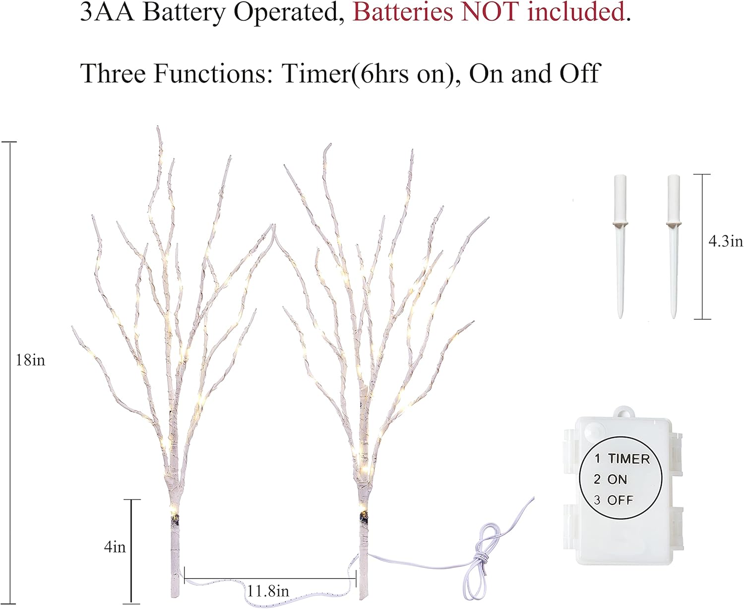 - 【TIMER FUNCTIONS】: This lighted branches white requires 3AA battery operated(batteries NOT included). Built in handy timer feature with 6 hours on and 18 hours off for a convenient and safe use