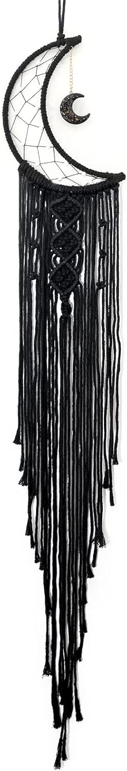 MOONFLY Black Moon Dream Catcher with Handmade Woven Cotton Dream Catchers Boho Macrame Wall Hanging Home Decoration Ornament Craft Gift (Black Moon)