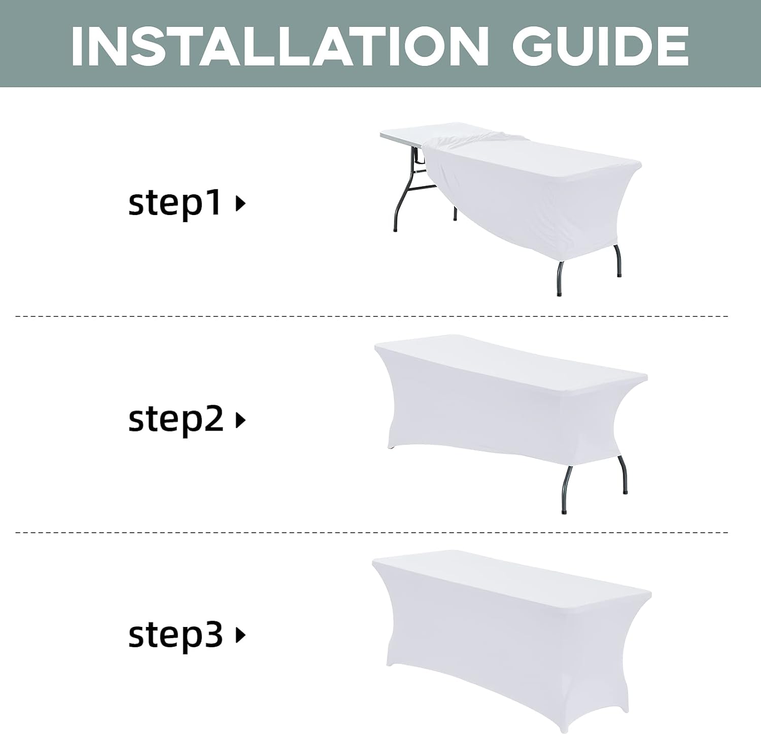 - [Easy To Set Up]: Our table cover is easy for you to set up,just wrap around your table, put 4 table legs into Elastic leg pockets,and ensuring that every part of the rectangular table is covered and spandex table cloth cover is displayed uniformly;It can be used for both indoors and outdoors
