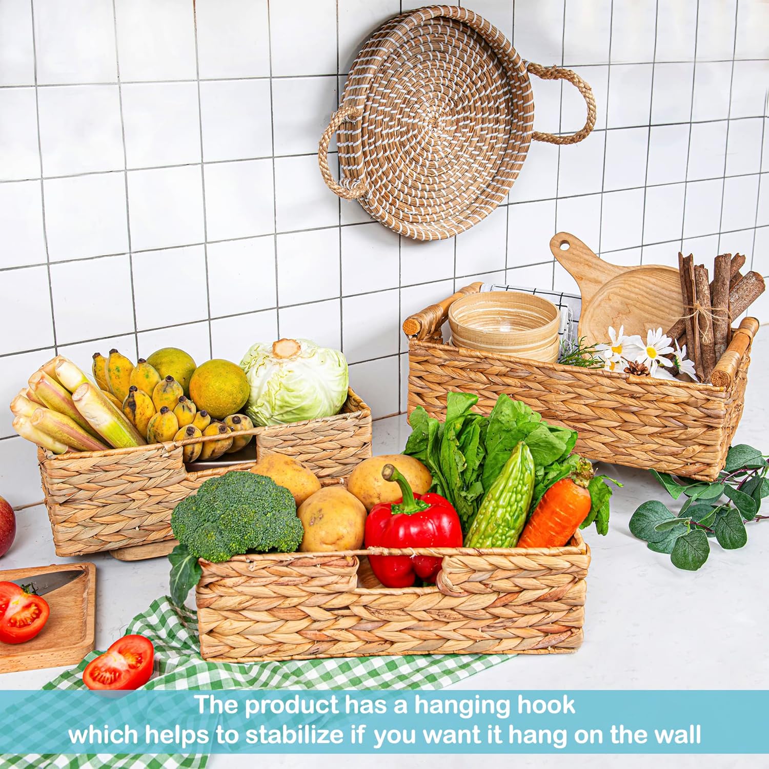 - ✅ Decorative Wicker Baskets: Natural water hyacinth basket is an easy and affordable way to change the style of your home. With their natural design, the wicker basket makes nice neutral backdrops and can brighten your day as well as impress your guests.