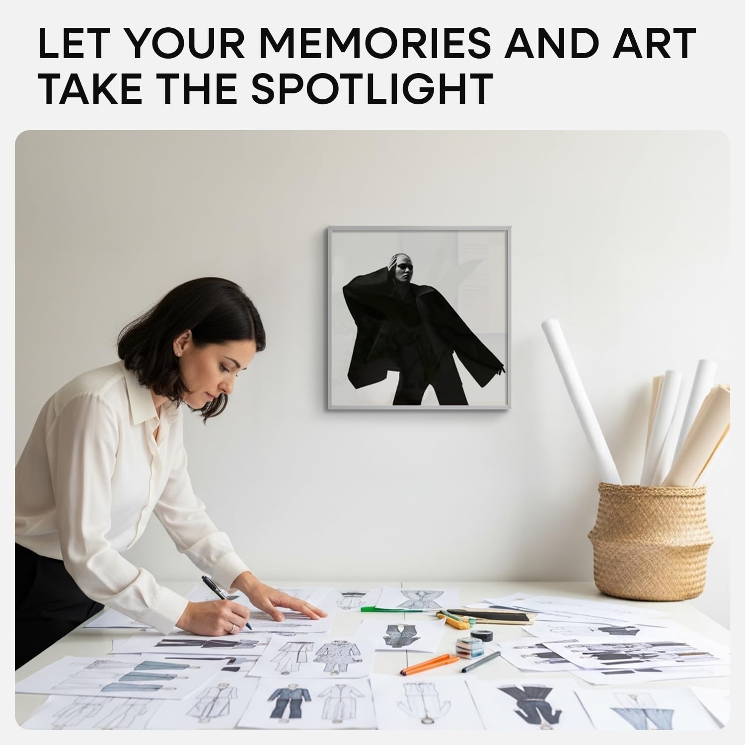 Homeforia 16x16 Silver Picture Frame, High End Metal 16 x 16 Square Frame with Mat 12 x 12 Photo, 16x16 Poster Frames Matted to 12x12 Print, 16 by 16 Hanging Frames, Tempered Glass, Wall Kit, Set of 1