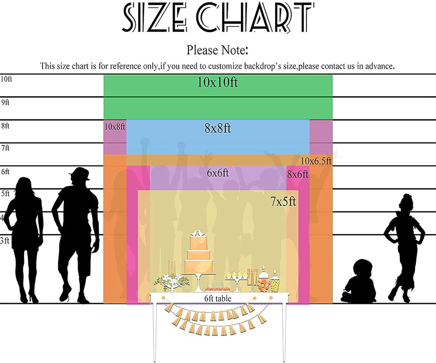- [Proper Size]: The background size is 10x7ft (width: 120 inches, height: 84 inches), foldable for shipping. The size is large enough to be paired with holiday related balloons, garland kit, props, and tablecloths to create a perfect party!