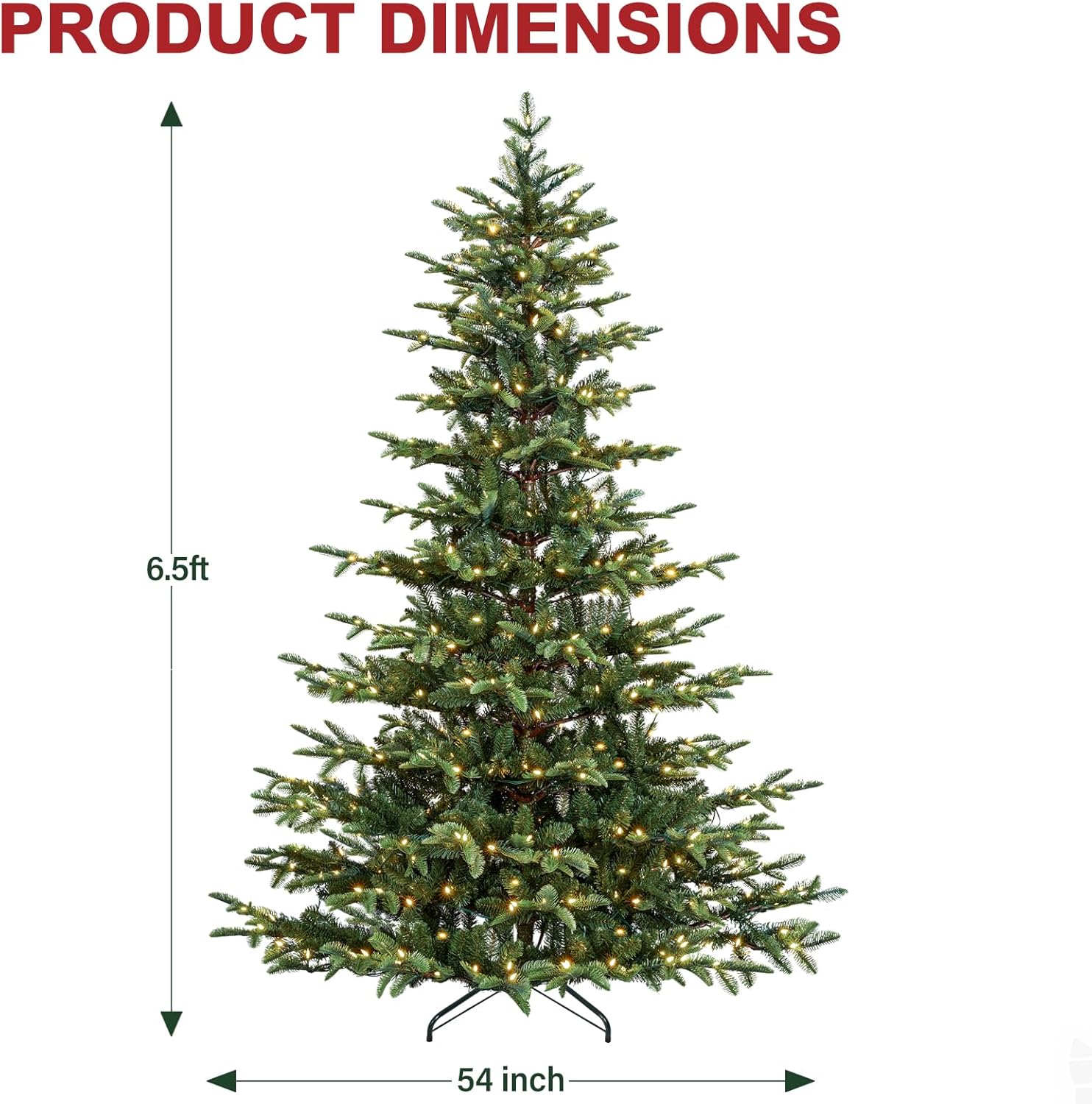 Hykolity 6 ft Artificial Christmas Tree with 797 PE &PVC Branch Tips, 330 Warm White LED Lights, Metal Stand and Hinged Branches