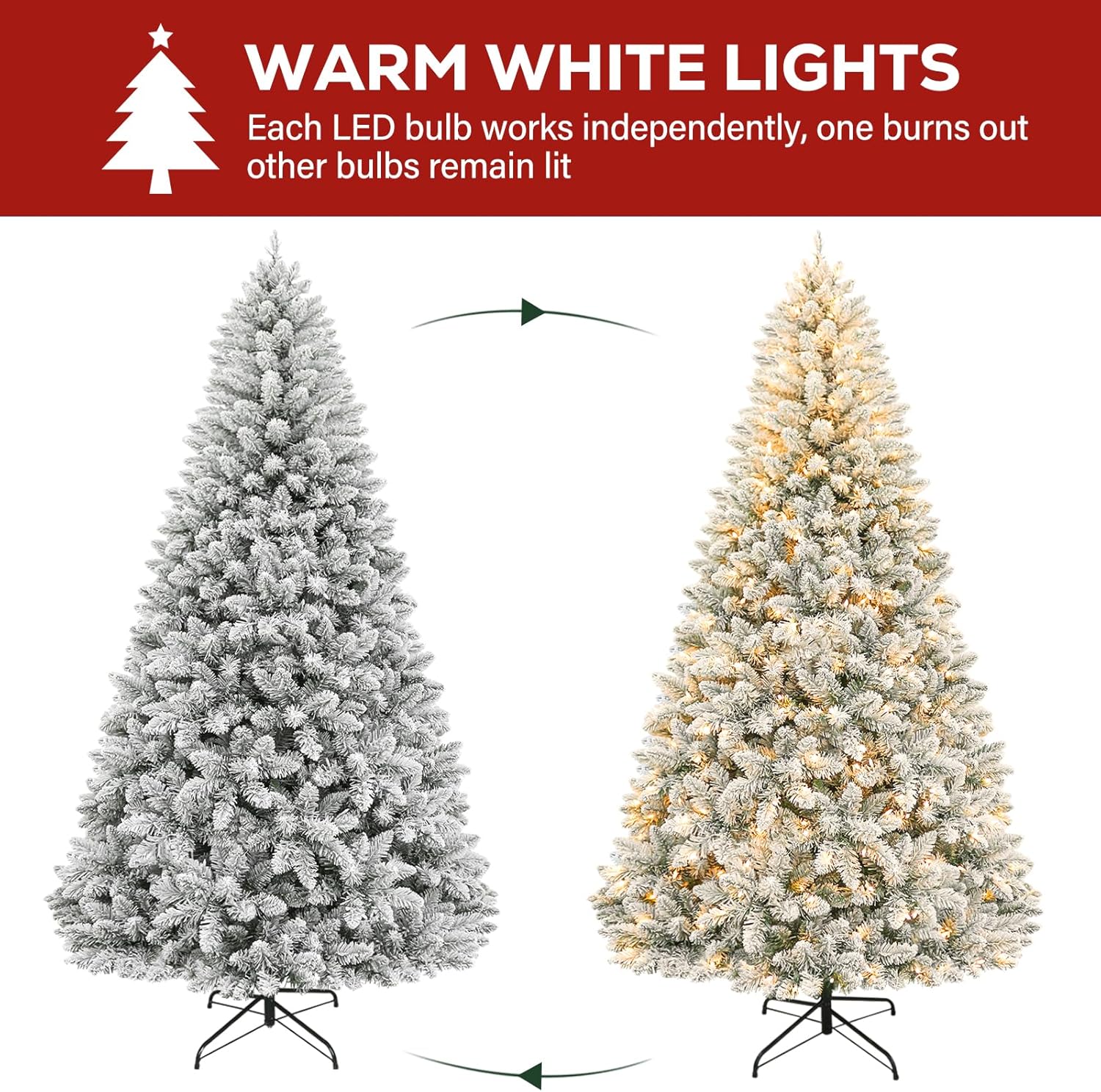 - WARRANTY: The Hykolity prelit flocked Christmas tree is guaranteed for 1 year. We offer free-exchange for any quality problems within warranty.