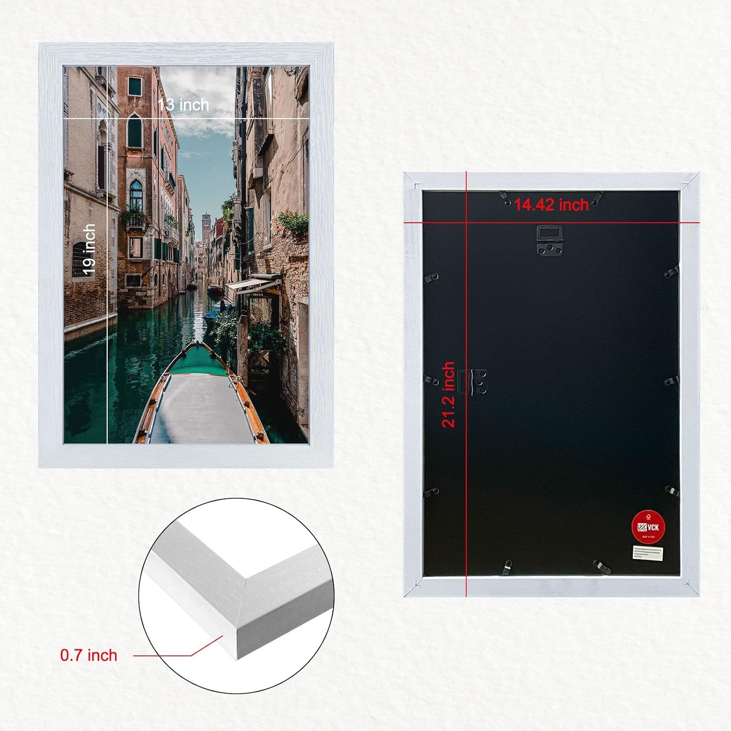 VCK Poster Frames 13x19 White 3 Pack, Solid Wood Picture Frames for Wall Mounting Hanging Art and Puzzle Frame