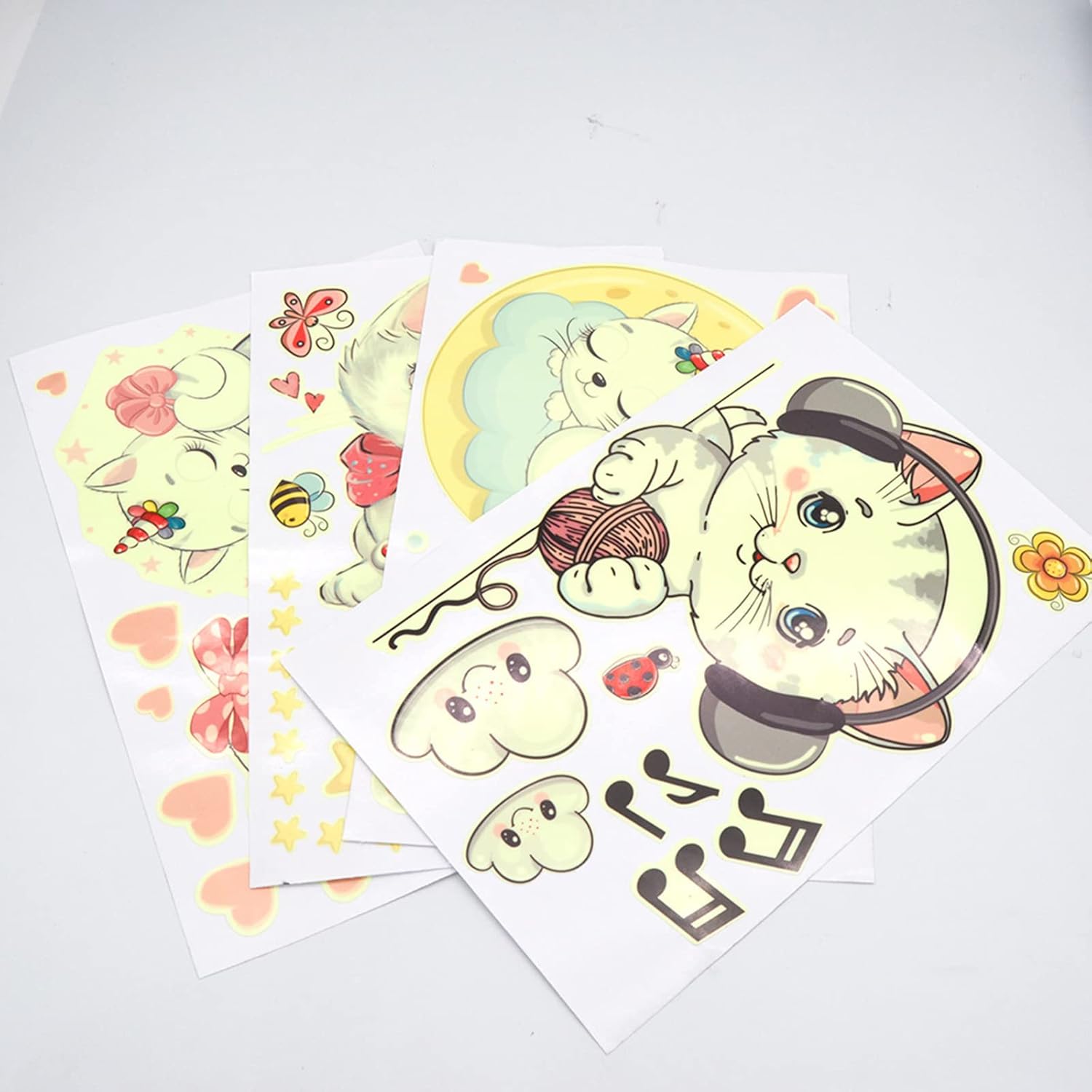 Glow in The Dark Stars for Room,Cats Glowing Wall/Ceiling Decals, Kitten Butterflies Stickers for Kids Bedroom, Clouds Bees Luminous Wall Decor for Boy and Girl Living Room