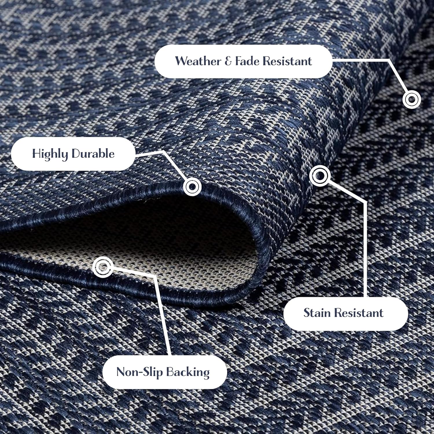 Adiva Rugs Outdoor Indoor Area Rug, Weather Resistant, Easy to Clean, Stain Resistant Floor Mat for Dining Room, Backyard, Deck, Patio (Navy Weiss, 6' x 9')