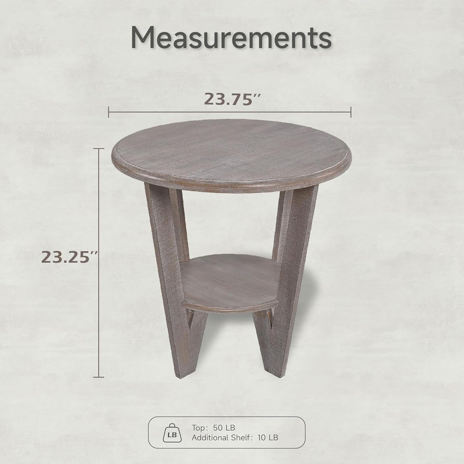 Rustic Farmhouse end Table with Storage Shelf, French Country Accent Side Table for Family, Dinning or Living Room, Small Spaces, Modern, Round, Vintage Grey Finish