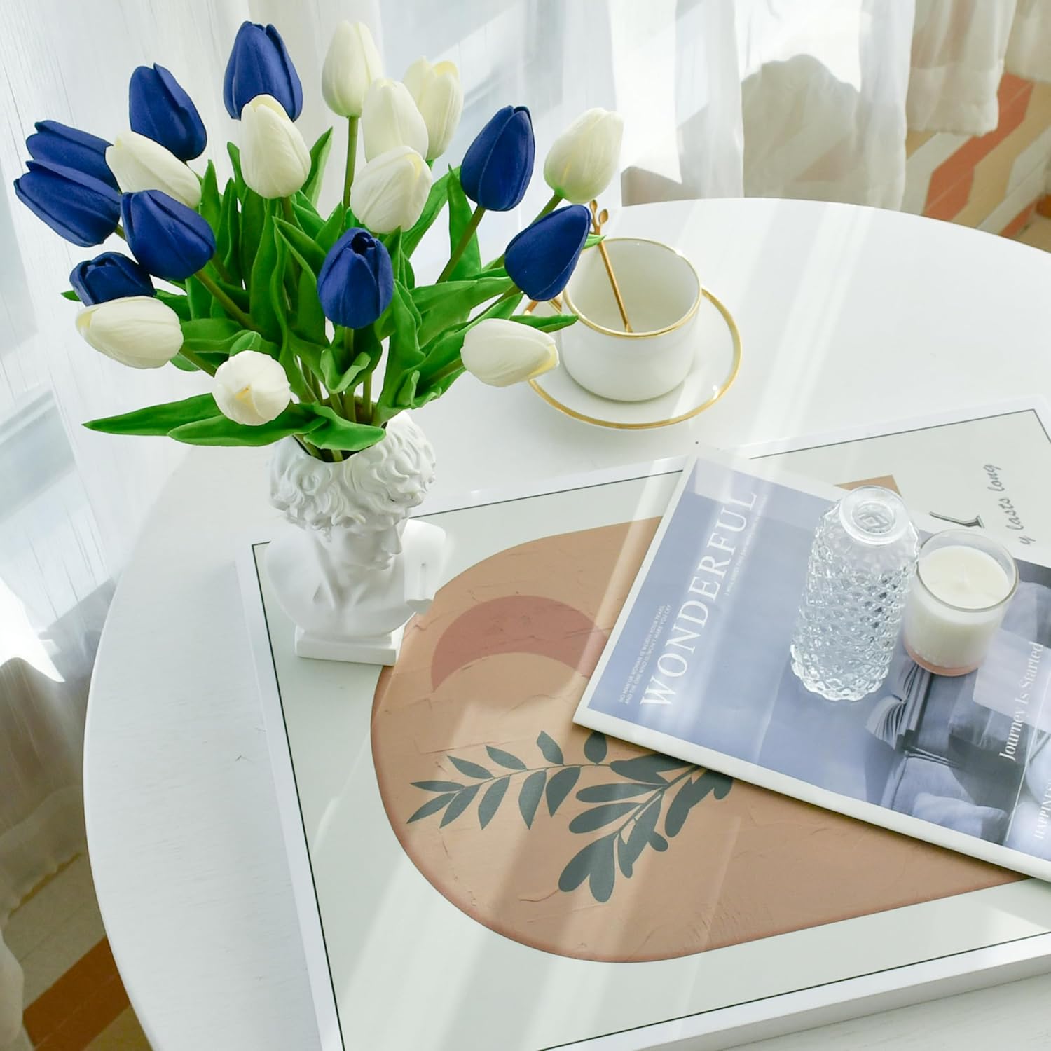Mandy's Artificial Tulips 20 Stems Blue and White PU Faux Flowers for Wedding Home Decor 13.5 Inch