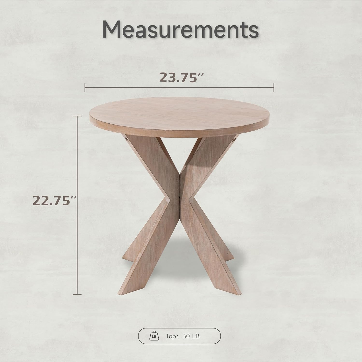 Farmhouse Cross Leg end Table, French Country Accent Side Table for Family, Dinning or Living Room, Small Spaces, Modern, Round, Vintage Grey Finish.