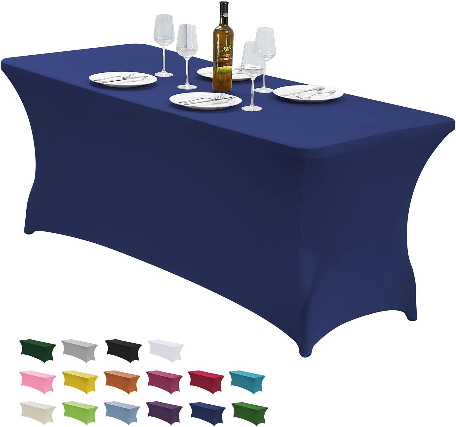 CWK 4FT Waterproof Stretch Spandex Table Cover for Rectangular Tables - Elastic Fitted Tablecloth for Folding Tables,Wrinkle Resistant Table Cloth for Parties, Weddings, Banquets & Events (Blue)