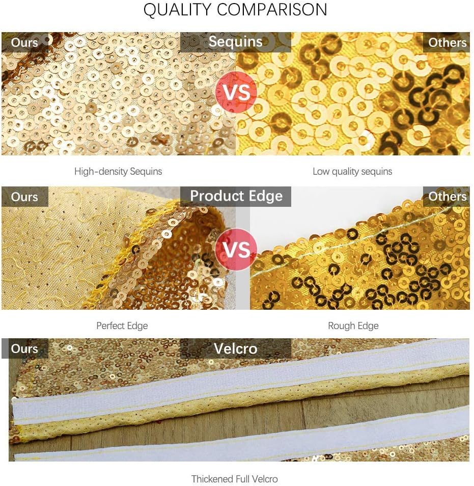 - Sparkly Tree Skirt Material: High-density 3MM sequins with satin mesh,extremely well made. This tree skirt will NOT FALL OFF and NOT SEE THROUNGH.