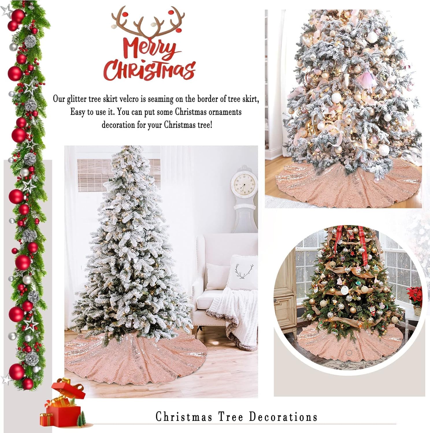Tree Skirt 48 Inch Sequin Rose Gold Tree Skirt Christmas Decorations