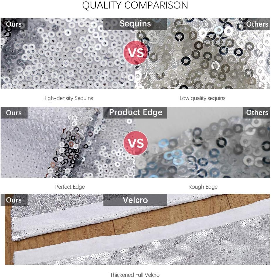 - Sparkly Tree Skirt Material: High-density 3MM sequins with satin mesh,extremely well made. This tree skirt will NOT FALL OFF and NOT SEE THROUNGH.
