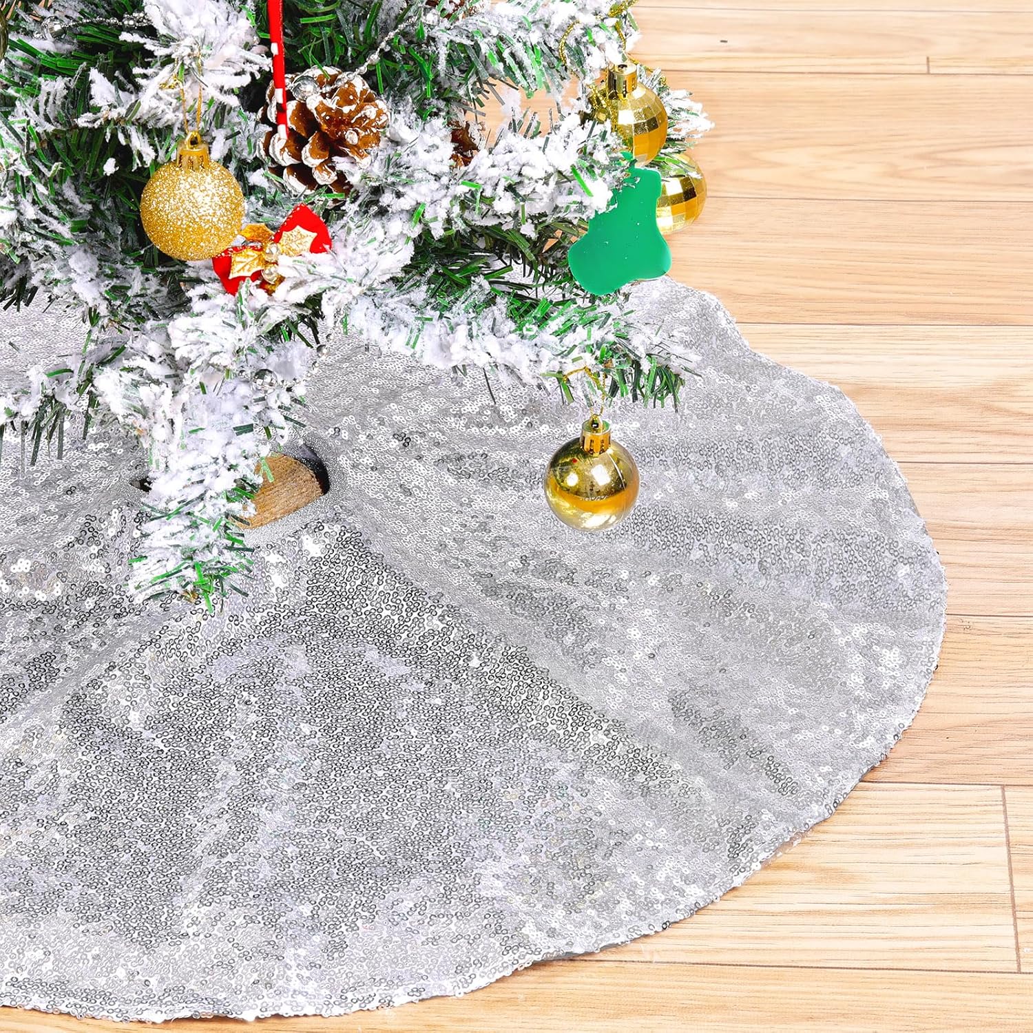 - Easy Installation: Our glitter tree skirt can be installed in seconds, and you can use them to attach a Christmas tree skirt to the base of an artificial or real Christmas tree.