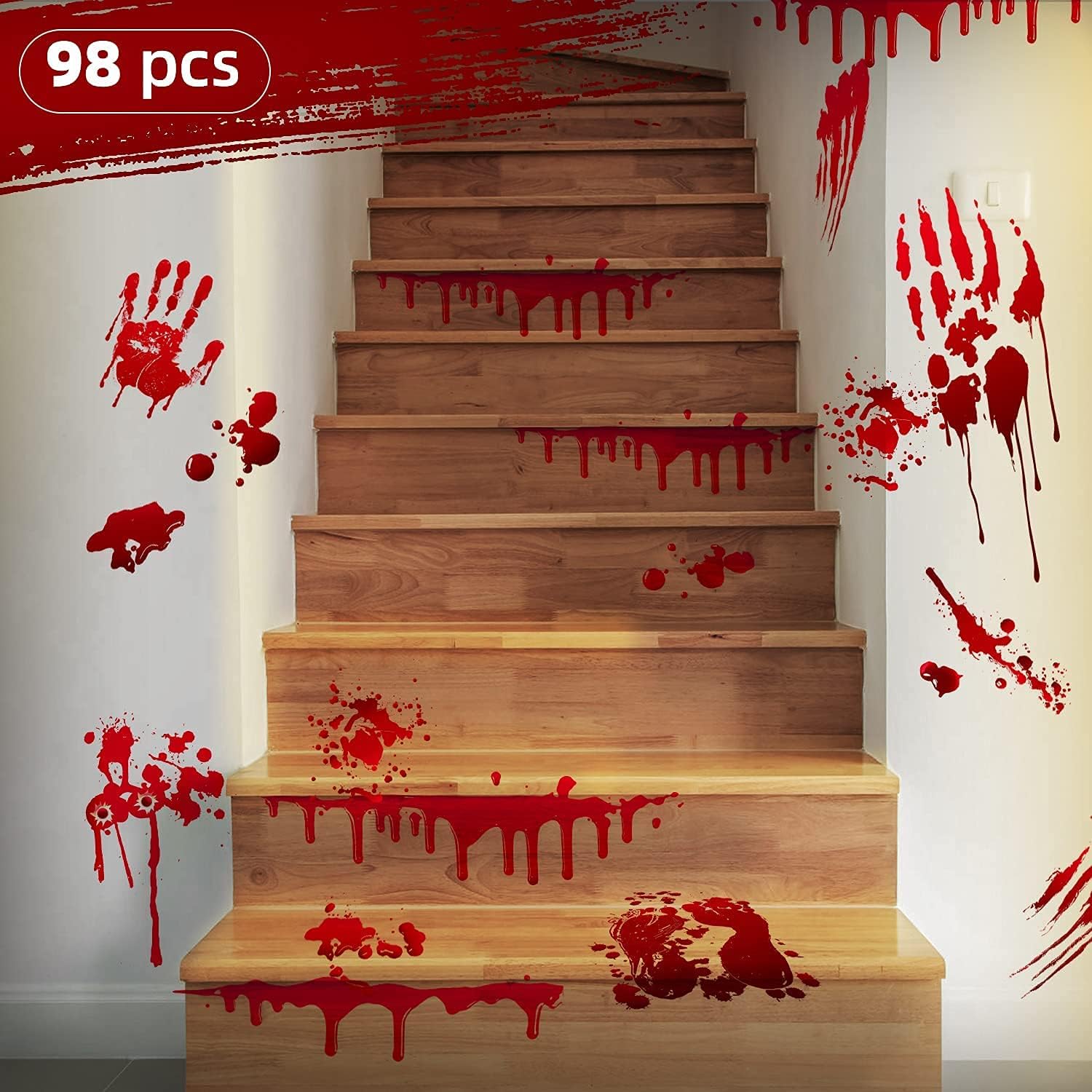 MSQ 95 Pcs Bloody Window Stickers - Removable Handprint Footprint Decals Floor Clings for Halloween Party Decorations - 9 Sheets Horror Window Stickers