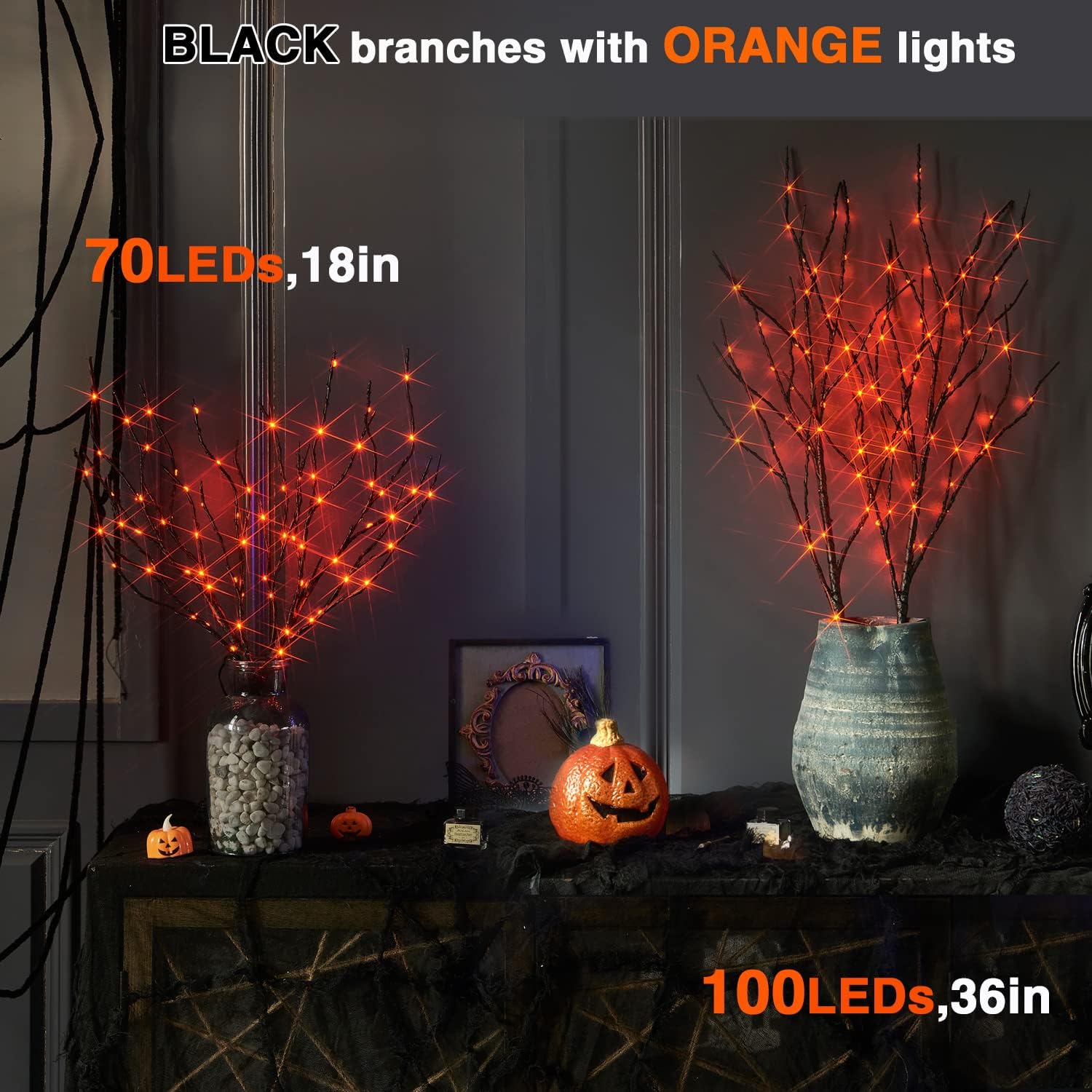 - ๐ HALLOWEEN DECOR: 2024 NEW designed LED black Halloween branches,glow with 100L orange fairy lights, is a great decoration for Halloween party.