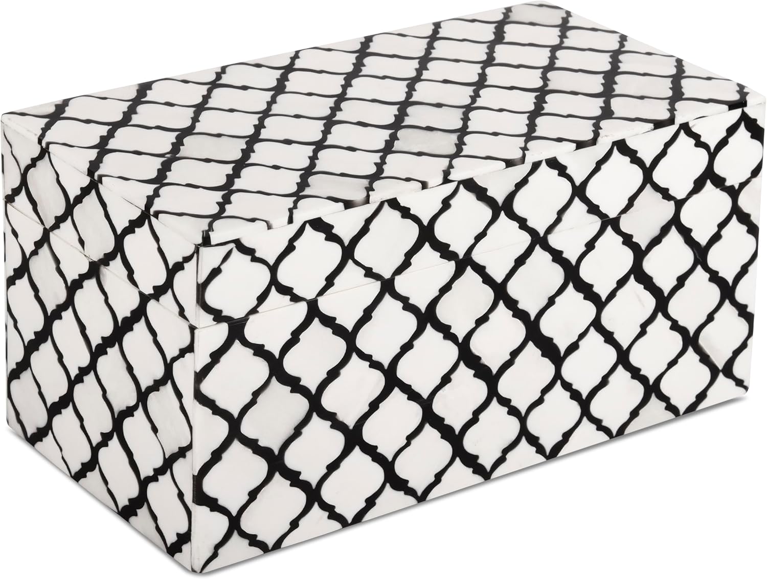 Handicrafts Home Handmade Moroccan Pattern Inspired Decorative Box - Large Storage Organizer for Neck Chains, Watches, Memory Keepsakes - Boho Style Treasure Box, Multipurpose Gift - B&w, 10x5x5