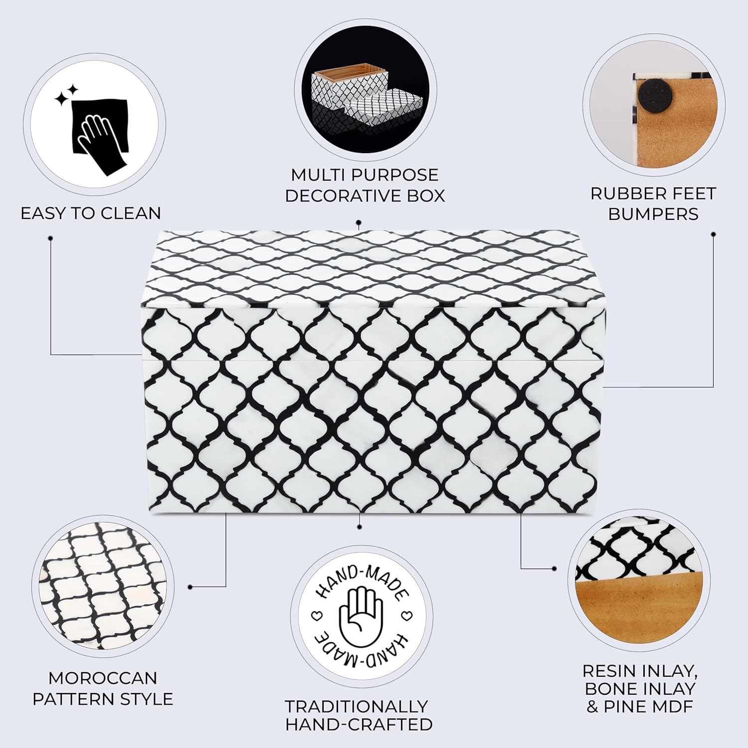 - Elegant Design: Crafted with intricate bone inlay patterns, resin accents, and a sturdy pine MDF frame, this decorative storage box brings sophistication and style to any room or decor.