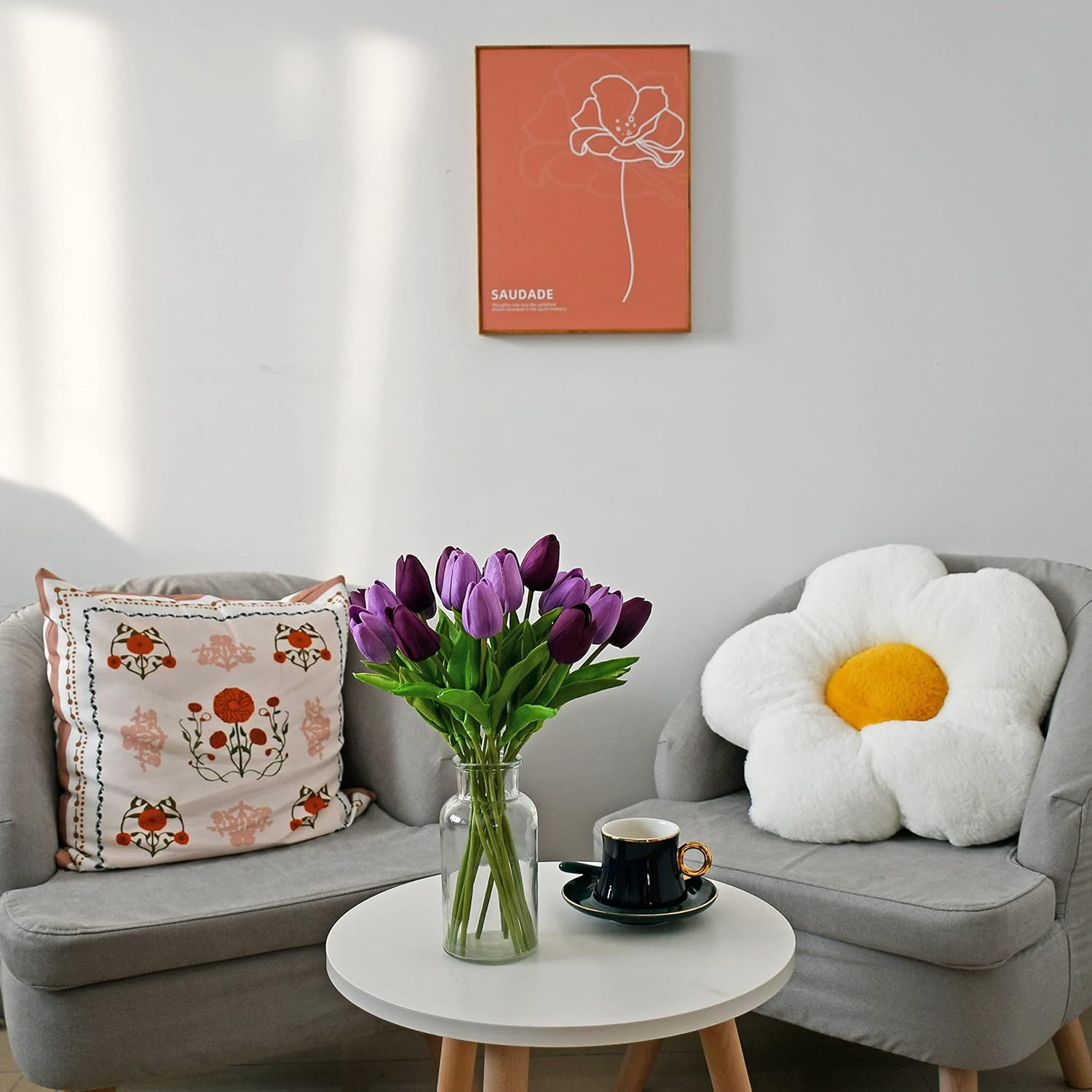 - All-Season Beauty with Gentle Color Care.These tulips bring timeless charm to Easter, Mother’s Day, weddings, or year-round décor. To preserve the soft tones of light-colored flowers—especially white—we recommend avoiding direct sunlight for long-term (6+ months) display, as PU petals may naturally yellow over time.