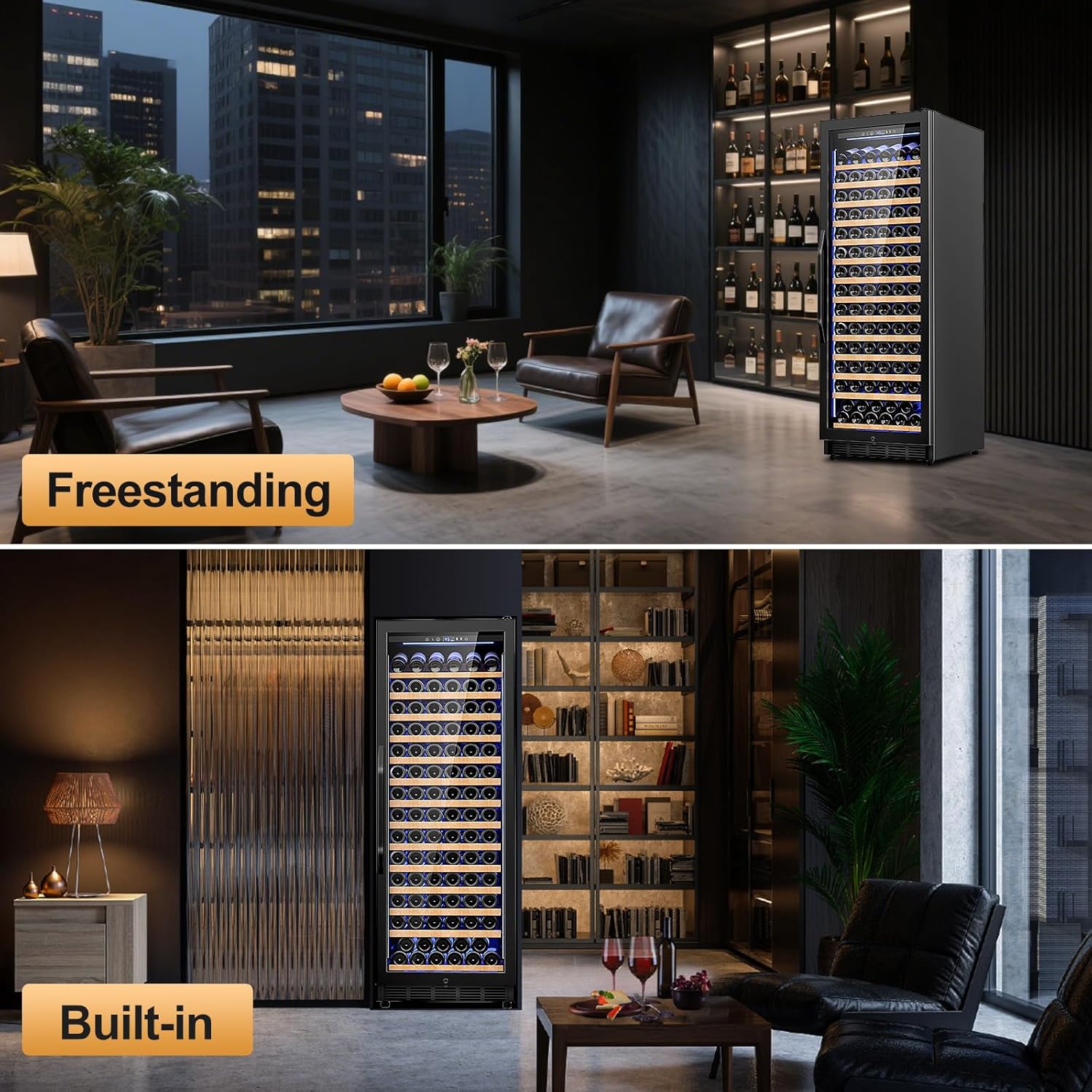 24 Inch Wine Cooler Refrigerator,179 Bottles Wine Fridge Large Capacity Professional Wine Cellars with Powerful Compressor,Quiet Operation and Elegant Design, Black