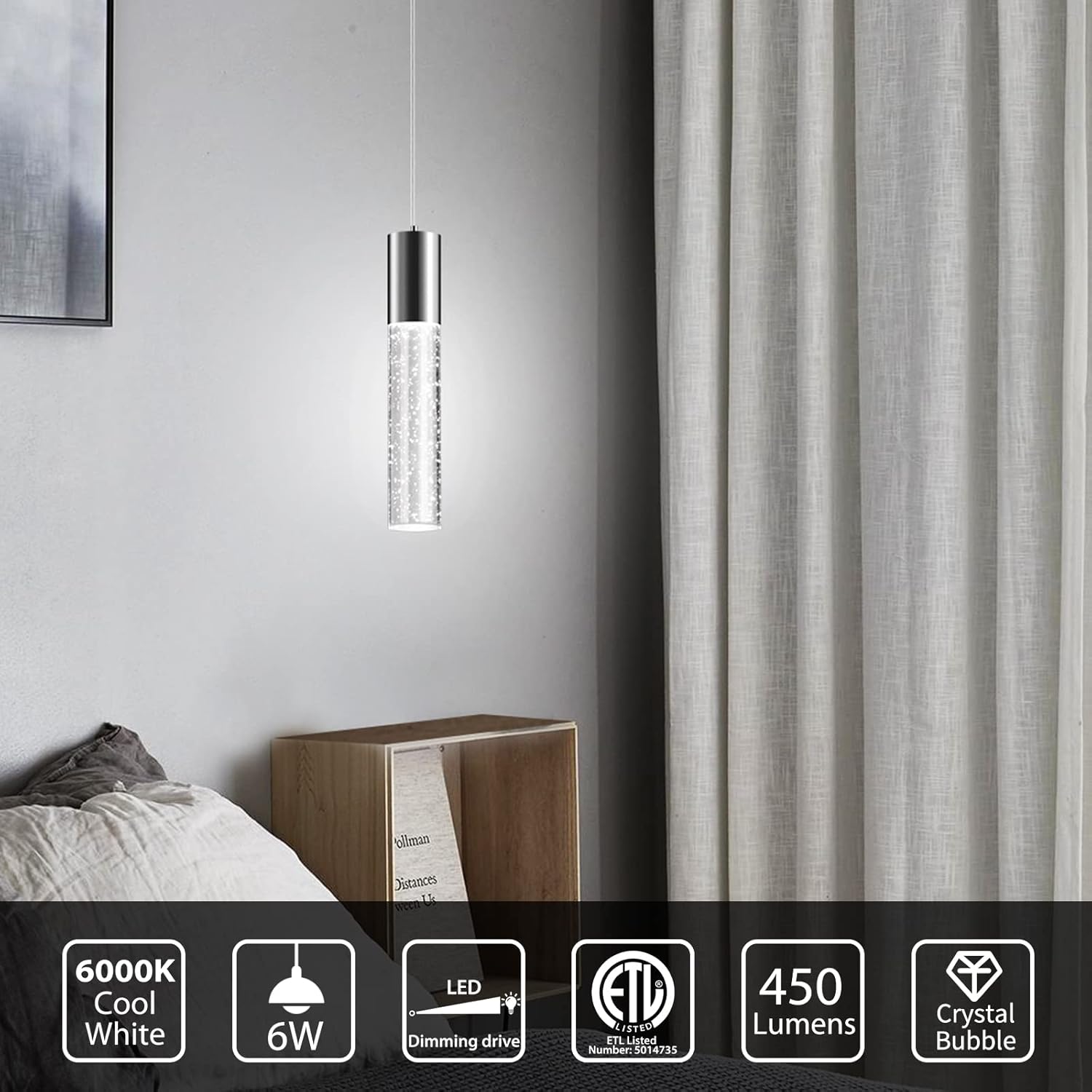 - 【Comfortable Island Light】:The pendant light fixture uses a 6-watt COB chip to emit a softer and more comfortable light, allowing you to completely relax and enjoy your food while dining. The LED pendant light is driven by an ETL-certified dimmable, making your modern island light last longer.