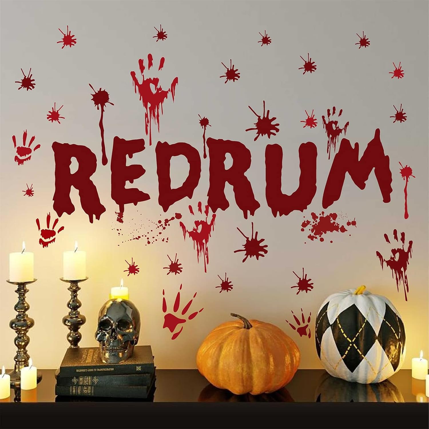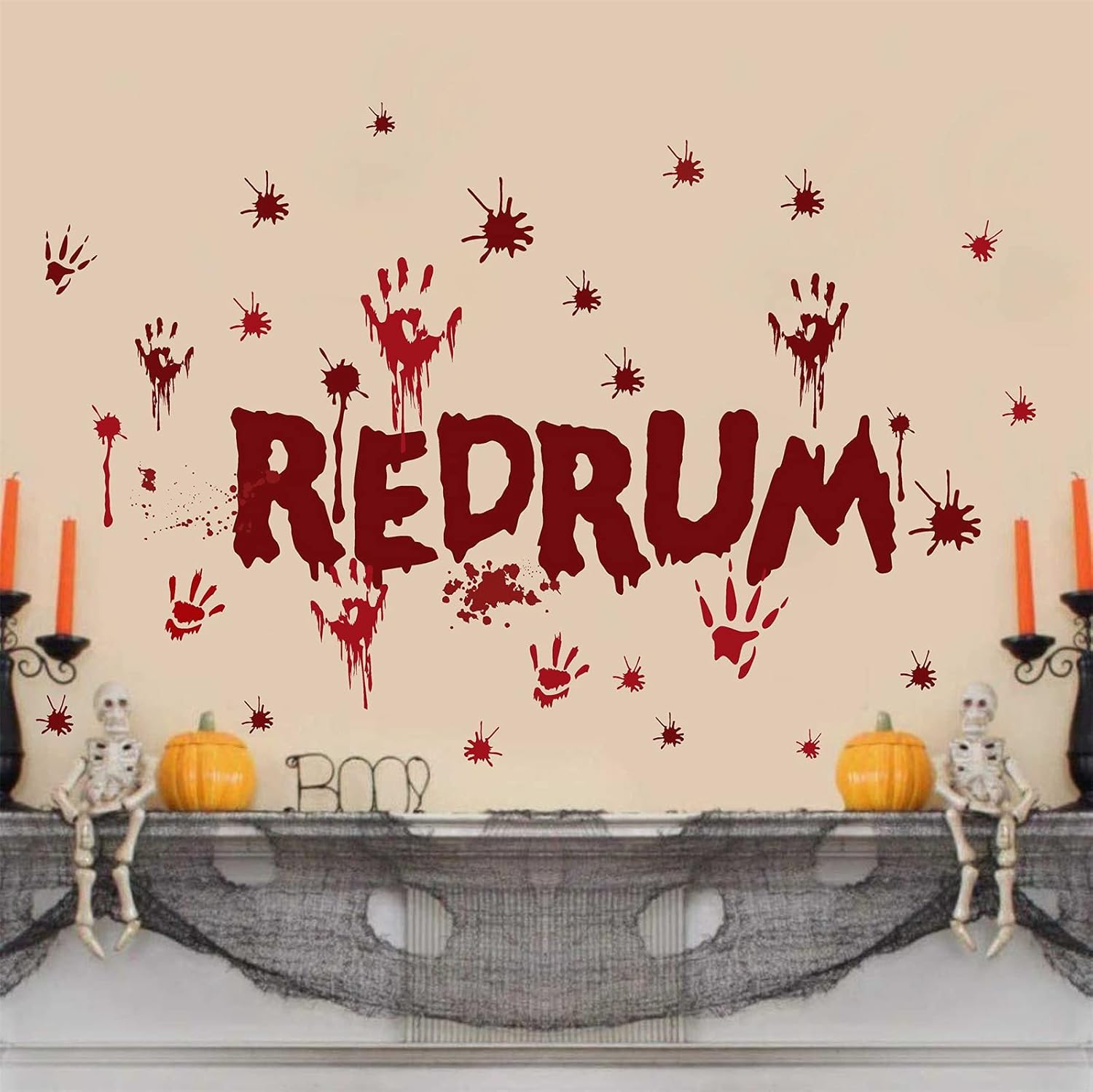 Halloween Redrum Murder Wall Decal Horror Ghost Hand Wall Decals Halloween Blood Splatter Decals Removable Peel and Stick Walls Stickers for Haunted House Party Window Decor