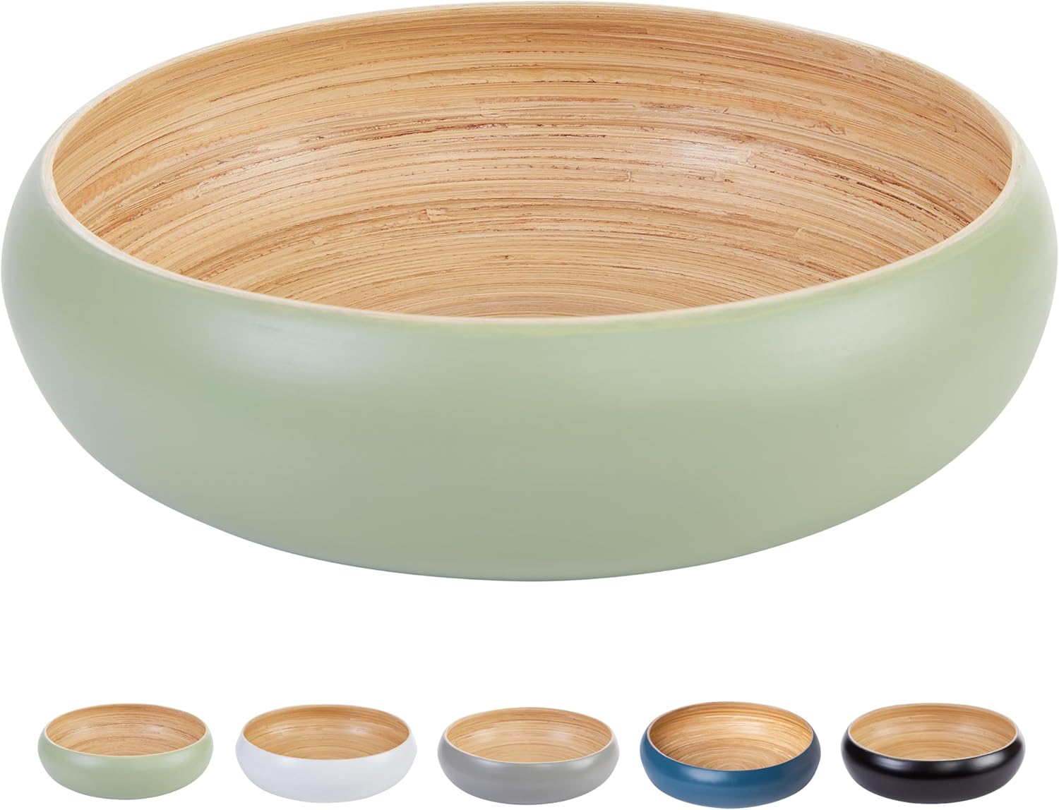 Fruit Bowl For Kitchen Counter, Decorative Bowl, Large Serving Bowl Or Fruit Basket For Kitchen Spun Bamboo (Sage)