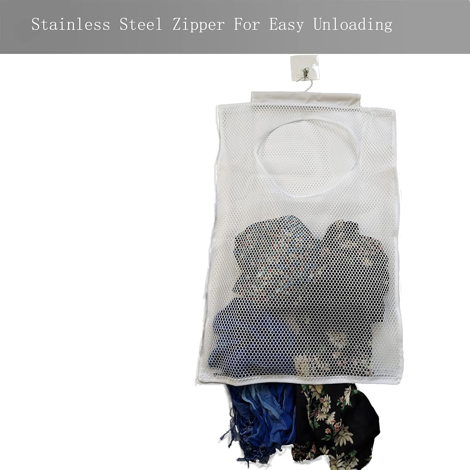 Hanging Mesh Laundry Hamper (30in*20in*2in) Large Dirty Clothes Bag, Can Be Used Behind The Door & Closet & Caravan& Bathroom (White)