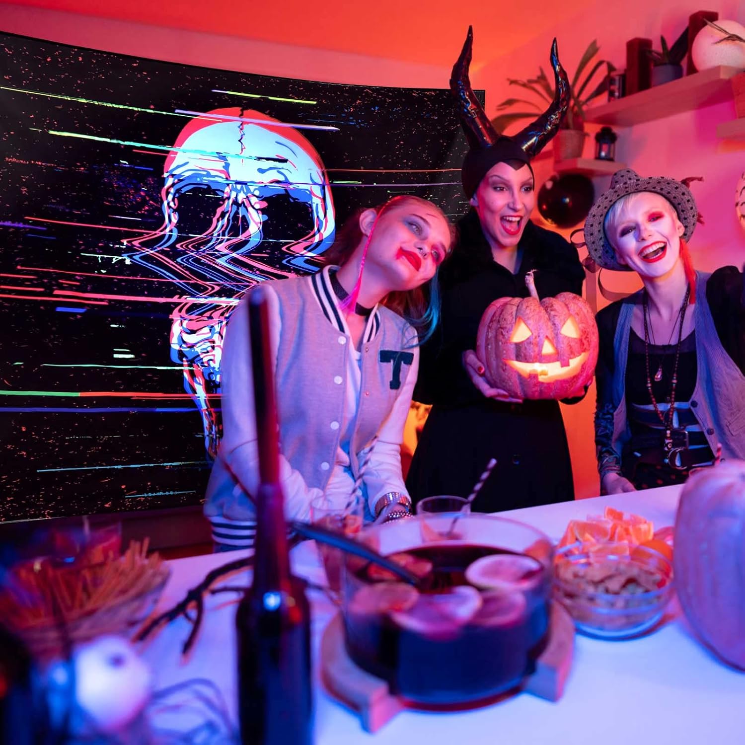 ADDWel Blacklight Skull Tapestry, Black Psychedelic Tapestry Glow In The Dark, UV Reactive Black Light Tapestries Posters Wall Hanging for Bedroom Living Room Dorm Party Backdrop Decor(60 * 80inches)