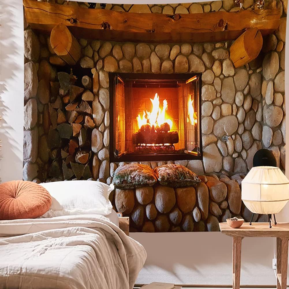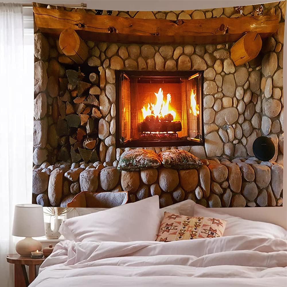 Kanora Vintage Bookshelf Tapestry Wall Hanging - Study Room Picture Art Retro Library Bohemian Hippie Tapestries Bedroom College Dorm Decor (Firplace, 59L51W)