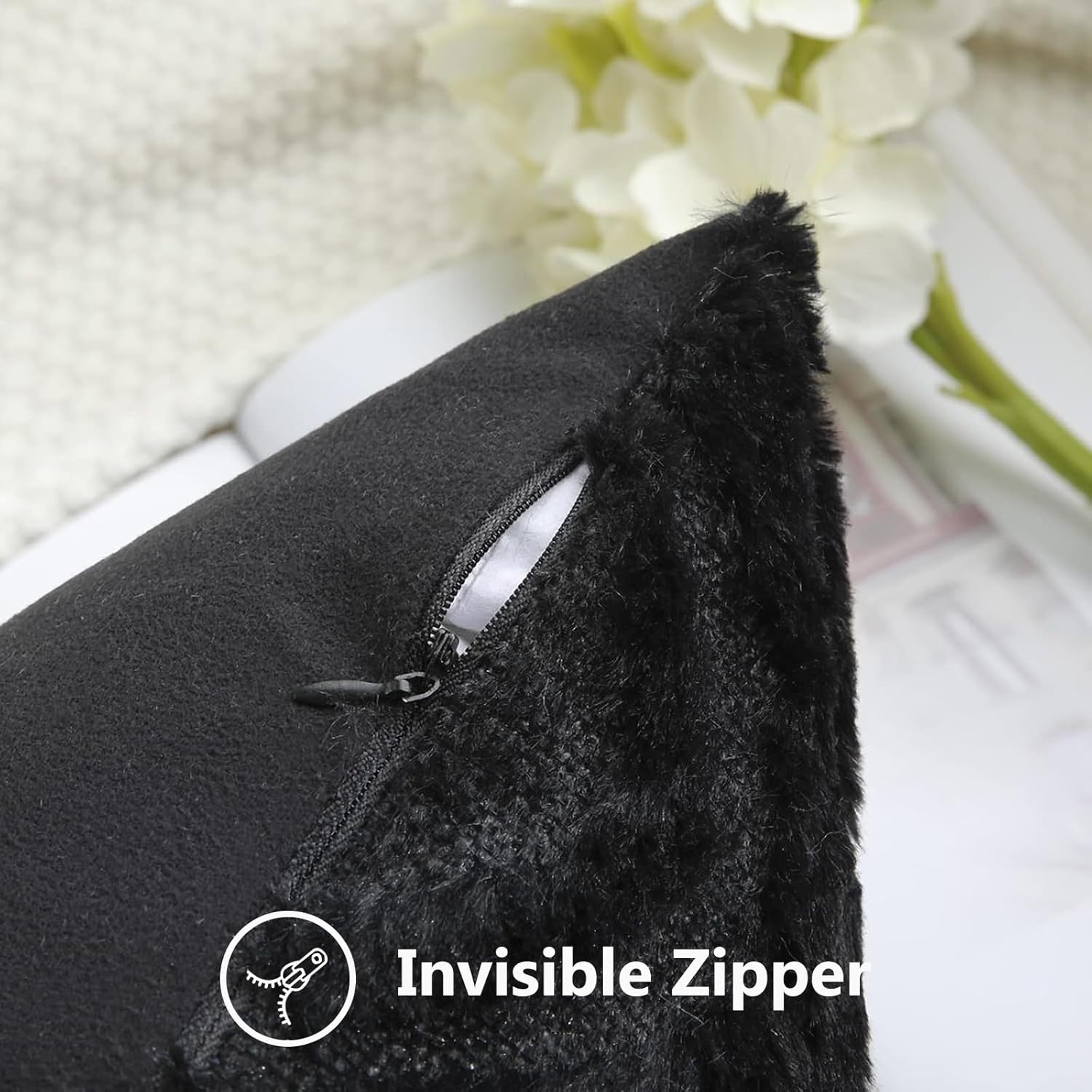 decorUhome Fall Throw Pillow Covers 18x18 Inch Set of 2, Soft Plush Decorative Faux Fur Black Solid Couch Pillow Covers, Accent Farmhouse Neutral Square Euro Pillow Cases for Sofa Bed Living Room