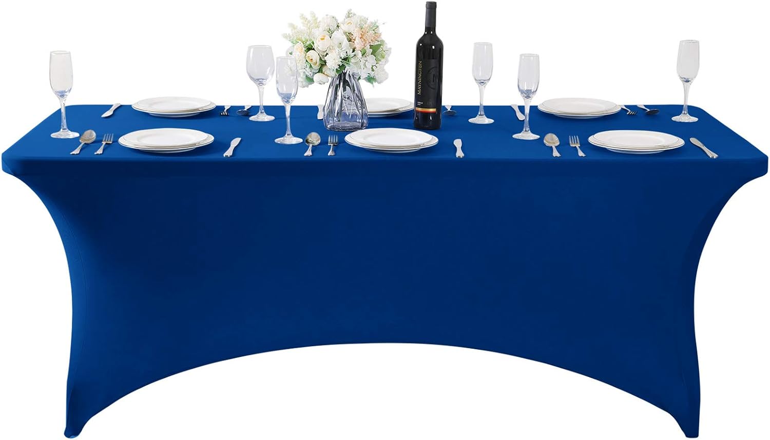 SuperO Waterproof Spandex Table Cover for 6FT Table Universal Fitted Stretch Tablecloth for Party, Banquet, Wedding and Events-Classic Blue