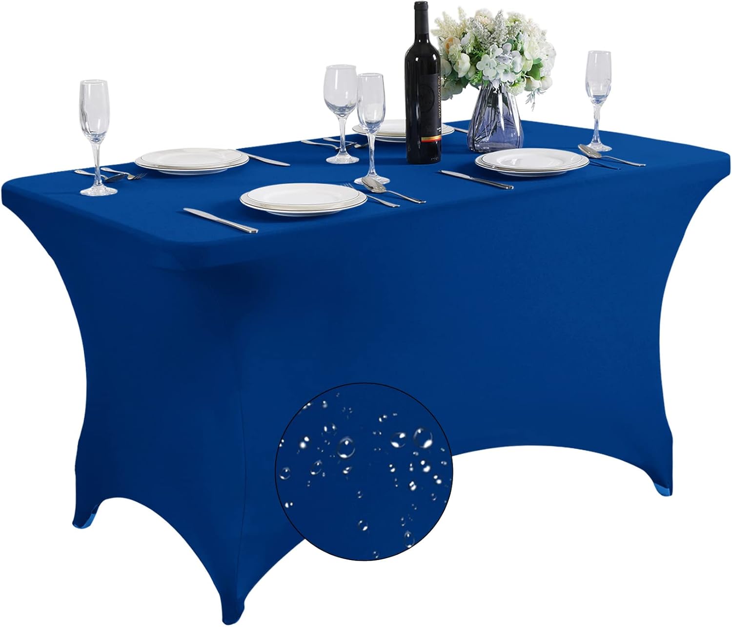 SuperO Waterproof Spandex Table Cover for 4FT Table Universal Fitted Stretch Tablecloth for Party, Banquet, Wedding and Events-Classic Blue