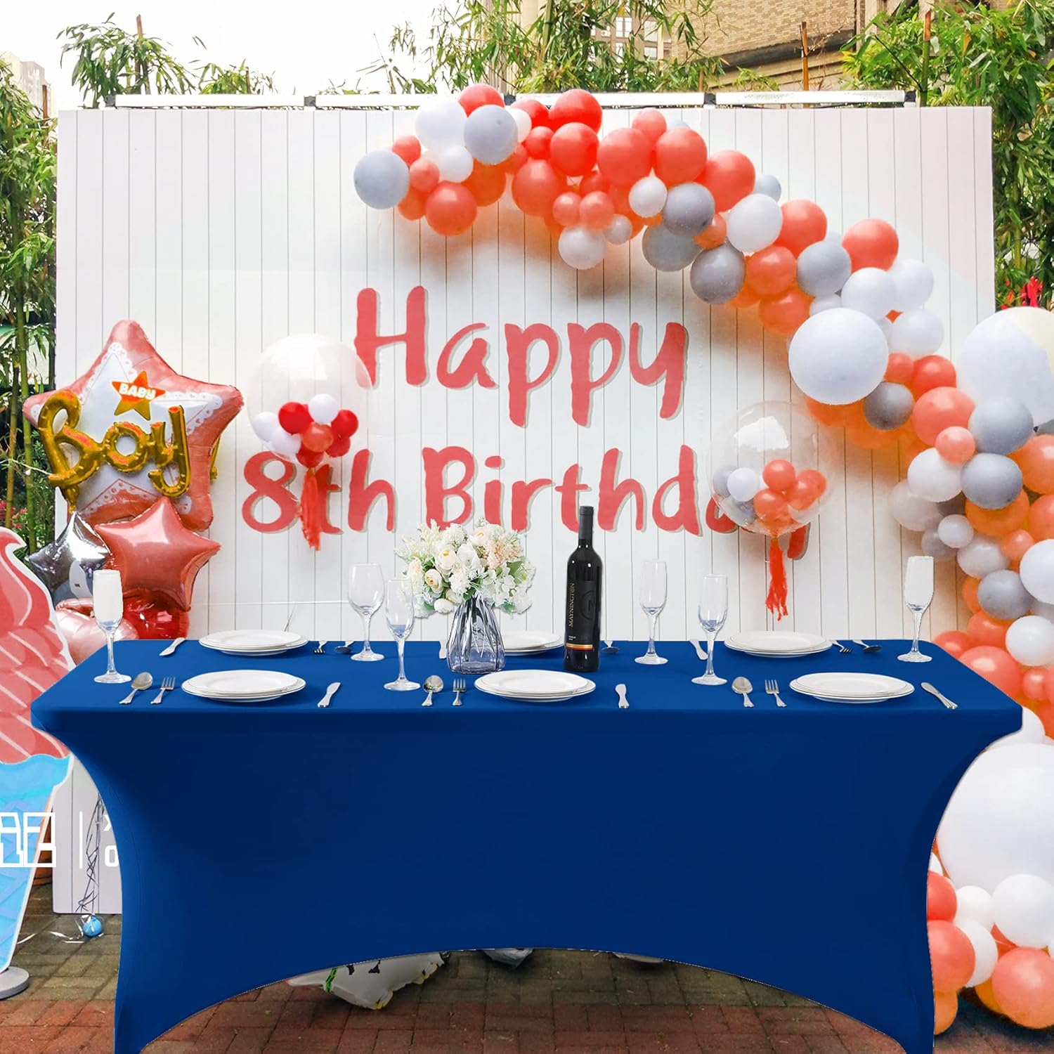 - Size & Design:This stretch table cloth is suitable for standard 8FT tables (96" Length x 30" Width x 30" Height). The four-way stretch spandex material and the elastic pocket design of 4 legs can better fit the table.