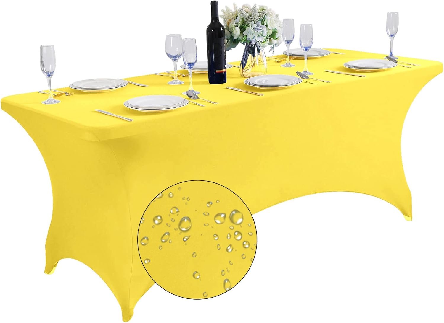 SuperO Waterproof Spandex Table Cover for 6FT Table Universal Fitted Stretch Tablecloth for Party, Banquet, Wedding and Events-Yellow