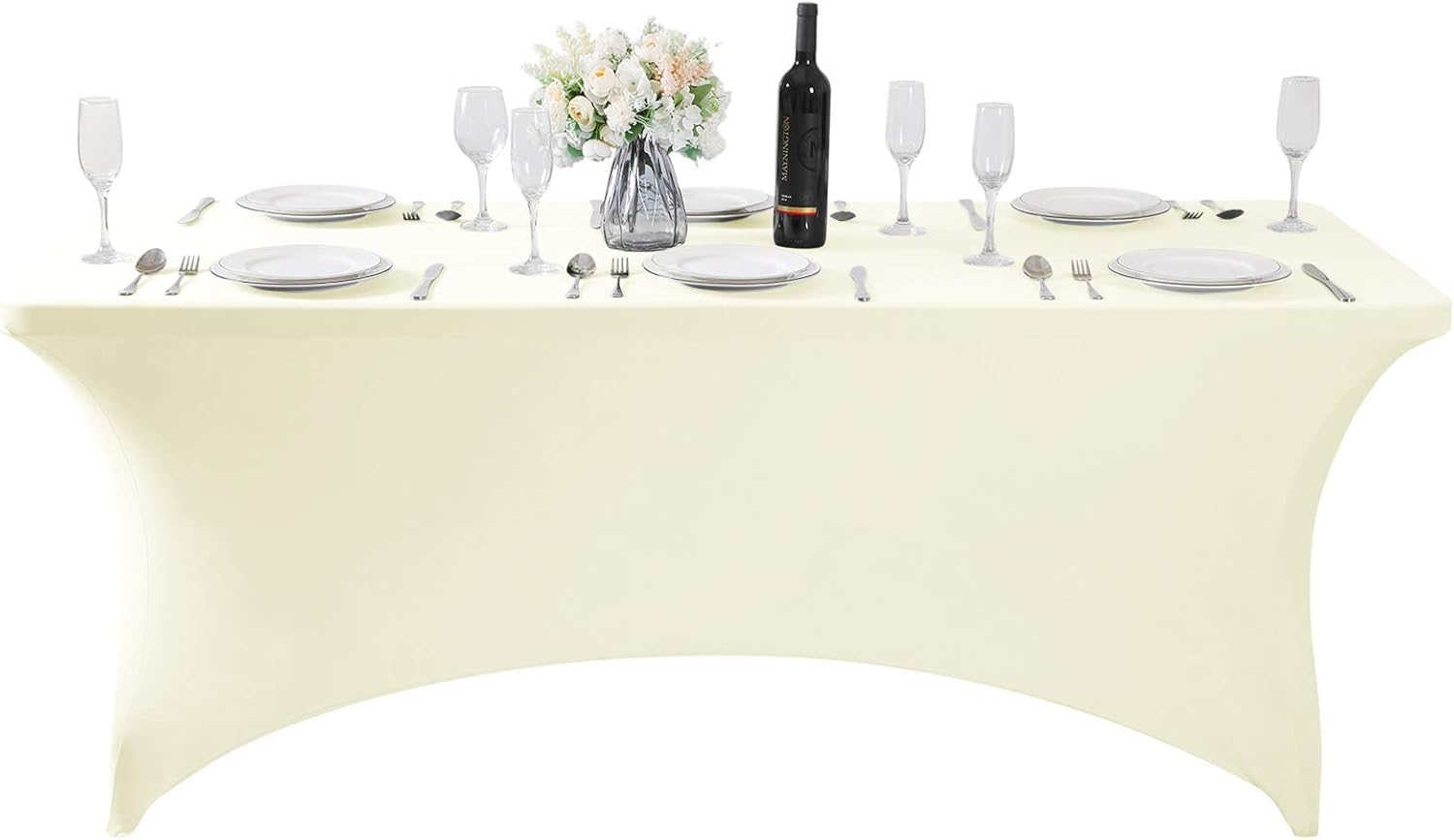 SuperO Waterproof Spandex Table Cover for 6FT Table Universal Fitted Stretch Tablecloth for Party, Banquet, Wedding and Events-Ivory