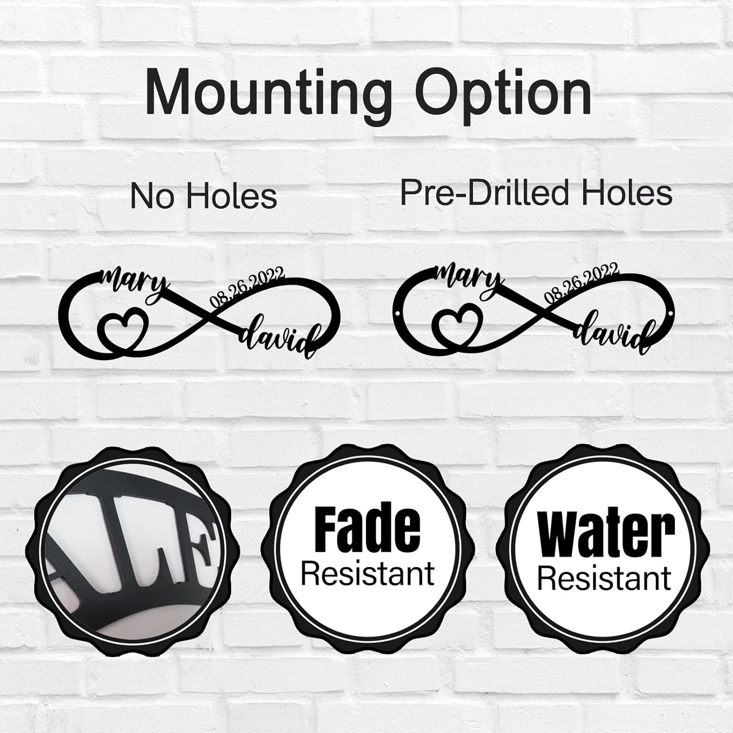 - ๐Premiun Material๏ผThis personalized metal name sign is cut by the top of the line laser technology to ensure precise design! The metal infinity plaque sign is made of heavy duty 14 gauge steel and finished in a super tough baked on powder coat paint, which is not only elegant but made to last.We can assure you the quality is perfection as we take great pride in making these.