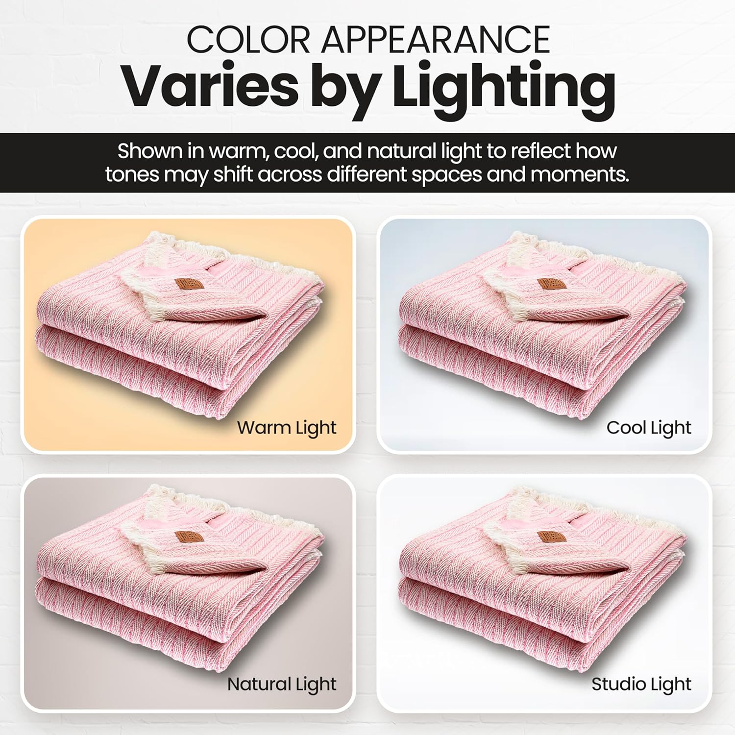 Gold Case Throw Blanket for Couch – 100% Recycled Turkish Cotton Blankets & Throws – Elegant Decorative Throw Blankets for Living Room Sofa – Woven Throws for Couch – Vintage Pink – 50x60 (Set of 2)