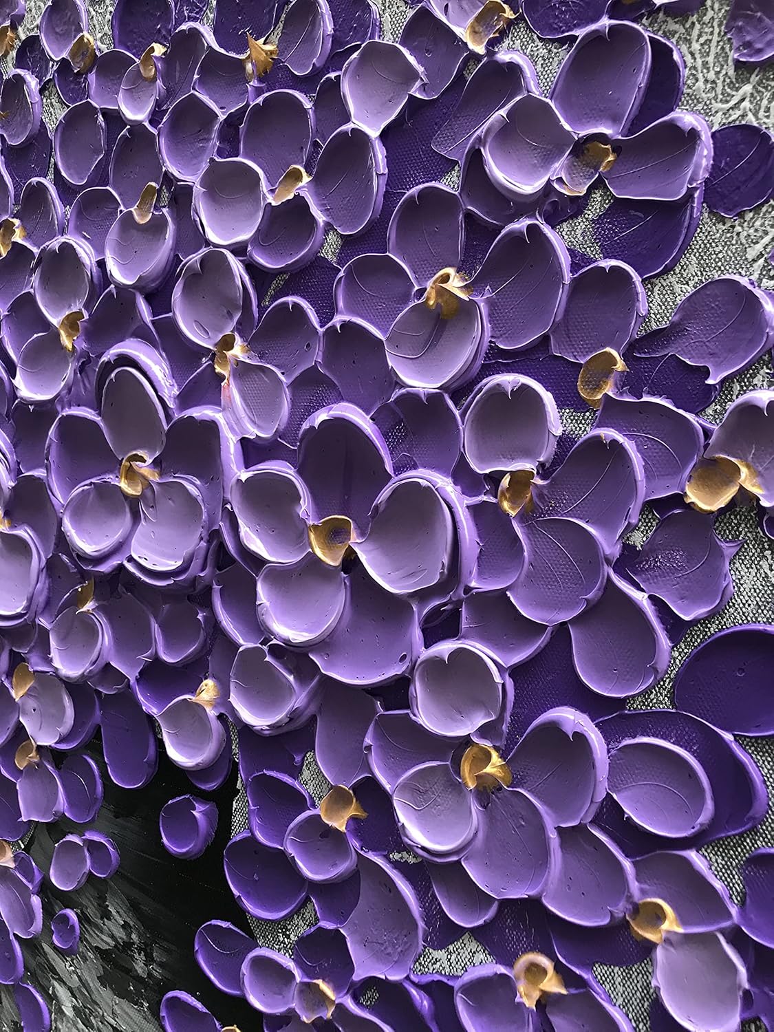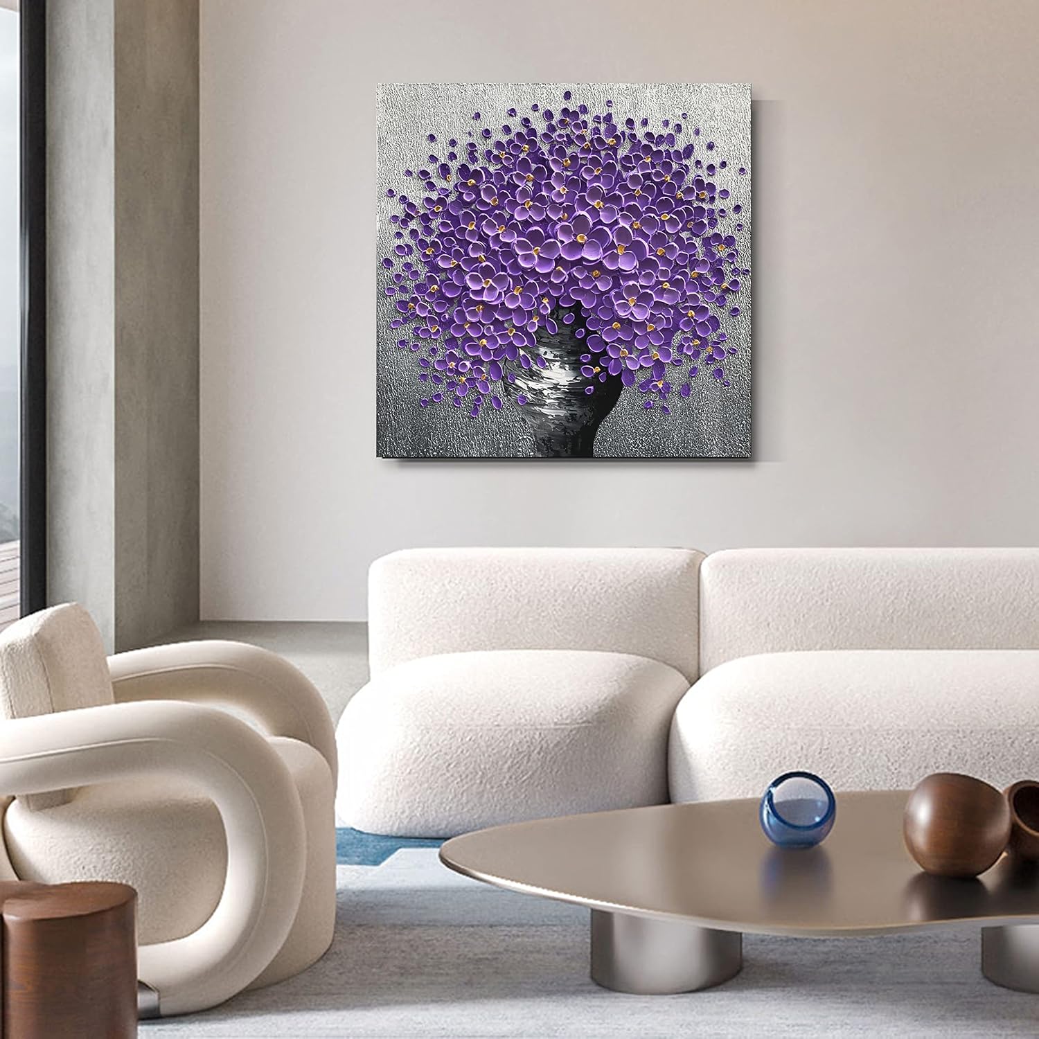 24x24 Hand-Painted Purple Flowers 3D Abstract Decorative Paintings, Wall Decorative Frame Wall Art, Modern Art Living Room Bedroom Office Hotel and Restaurant Wall Art