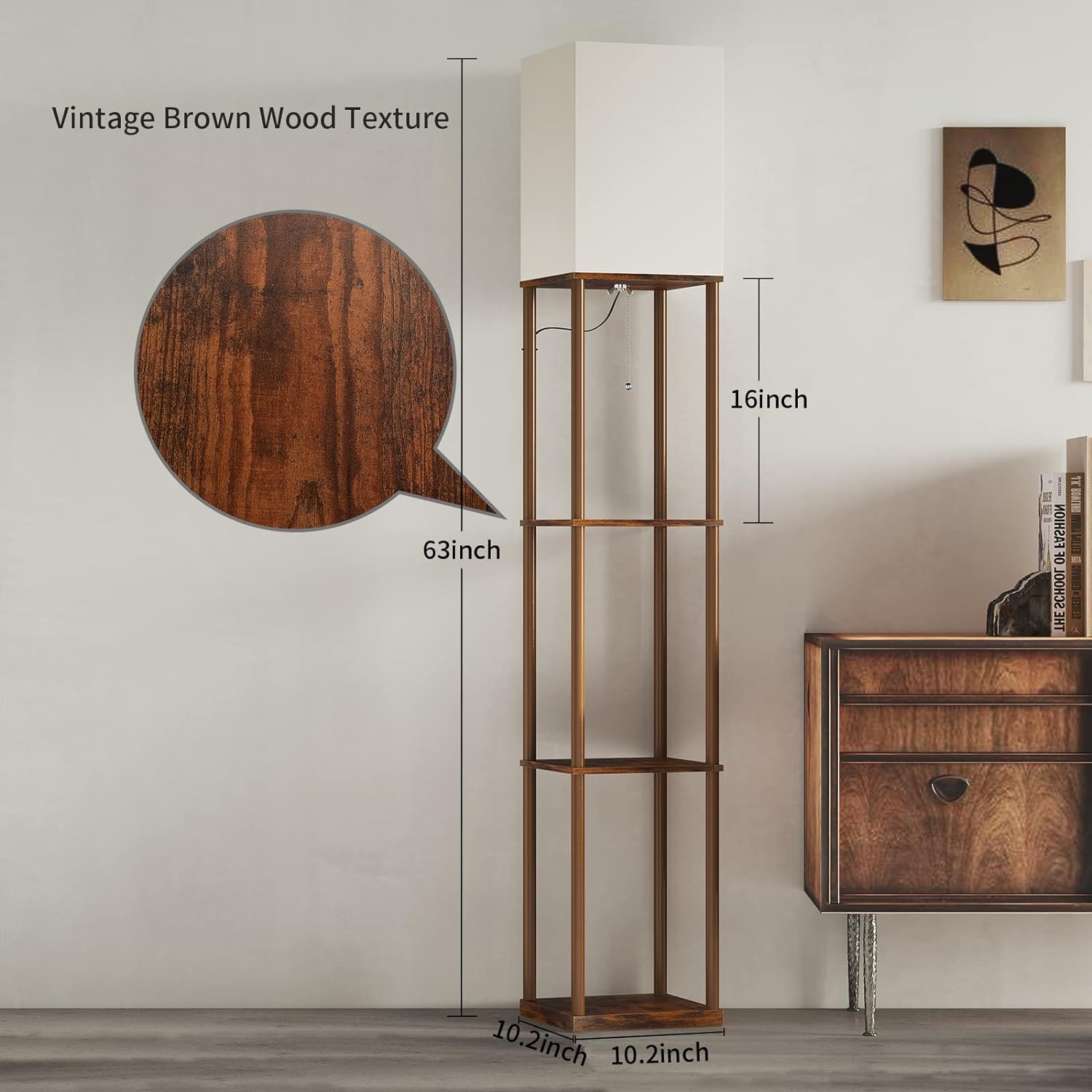 SUNMORY Floor Lamp with Shelves, Modern Square Standing Lamp with 3 Color Temperature Bulb, Corner Display Bookshelf Lamp for Living Room and Bedroom (Rustic Brown)