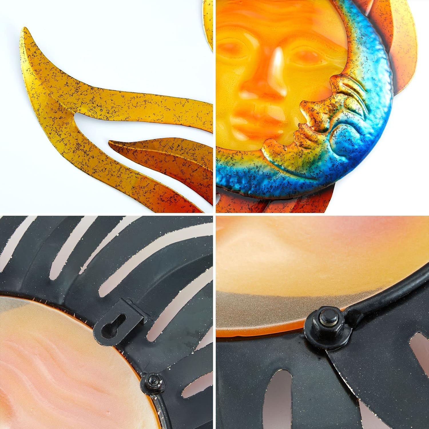 Metal Sun Wall Decor Outdoor Garden Fence Art Sun Moon Wall Art Hanging Lndoor Living Room Yard Home Wall Sculpture