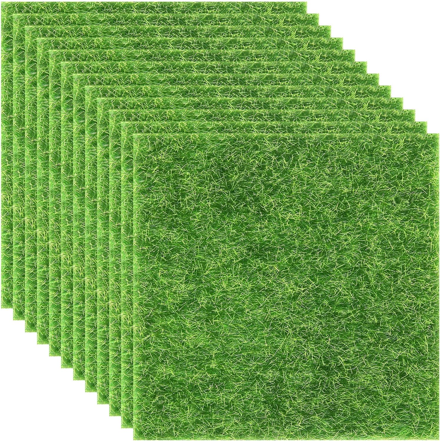 Elcoho 12 Pieces Fake Grass for Crafts Fairy Garden 6 x 6 Inches Artificial Garden Grass for Miniature Ornament Dollhouse DIY Decoration