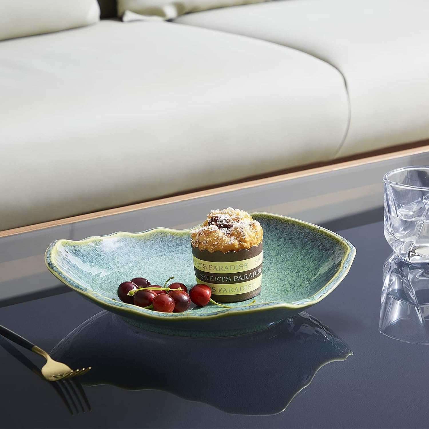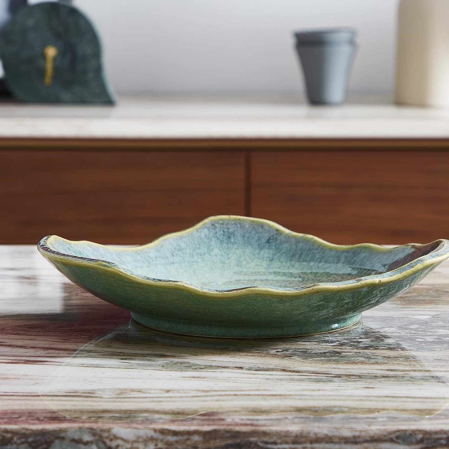 Ceramic Decorative Dish, 12'' Large Green Decorative Bowl, Versatile Centerpiece Decor, Key Bowl, Gift Decor Tray for Entryway Table Living Room Dining (12'' Dish)