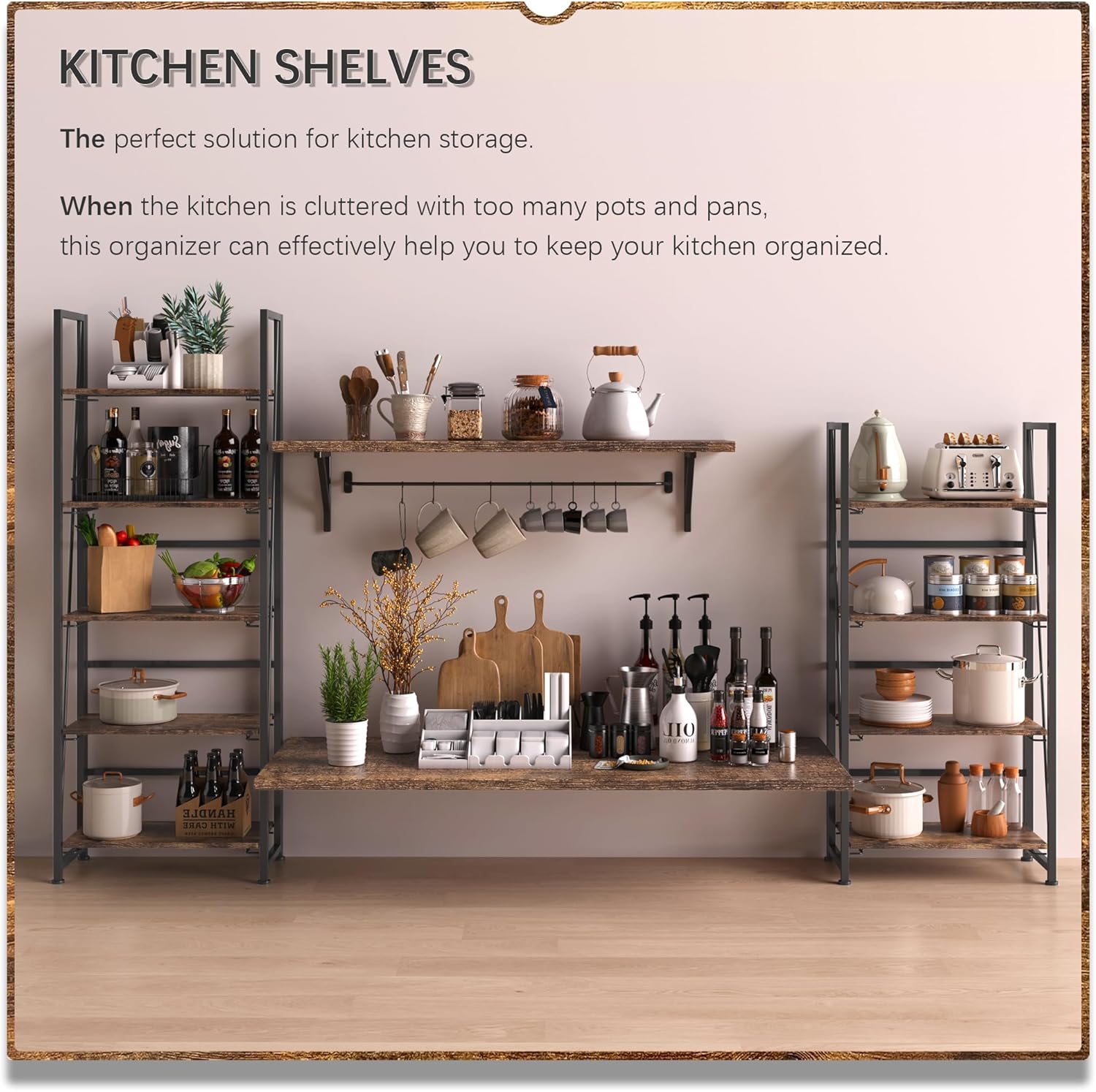 - 【Simplicity and practical folding bookshelf】it is a industrial style design with simplicity and retro, which can not only make your room in good order, but also occupy few space. You can put it in any space of your home, such as living room, bedroom, corridor, kitchen, balcony, etc