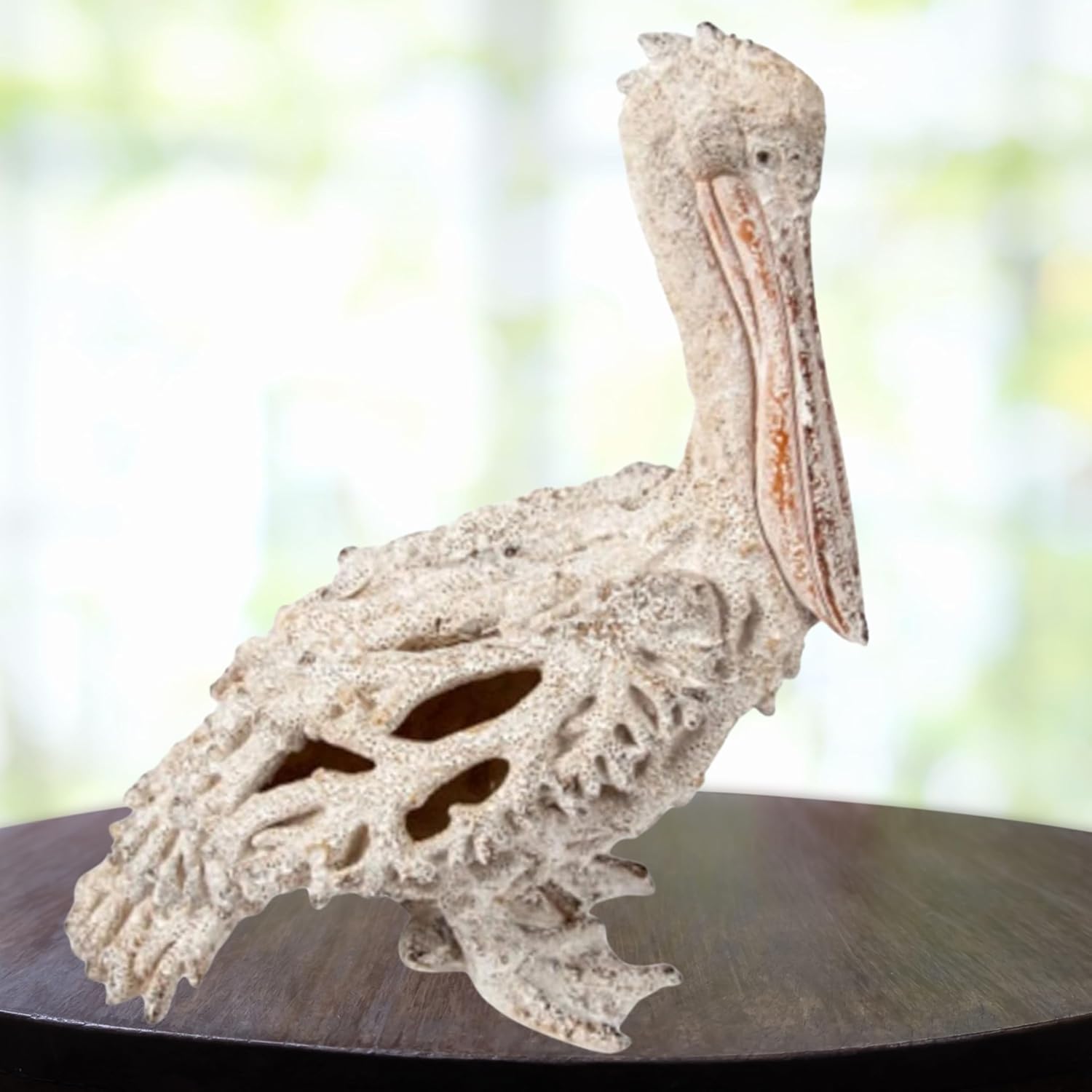 - Elegant Coastal Decor Accent – This white pelican figurine features a coral reef-inspired texture and carved look, adding a peaceful ocean vibe to any space