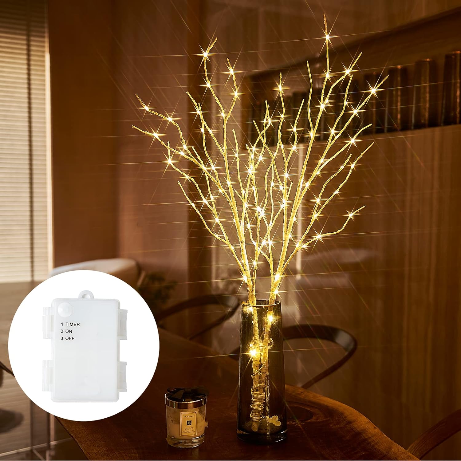Birchlitland Lighted Birch Branches 32IN 100 LED with Timer Battery Operated, Artificial Tree Branch with Warm,Willow Branch Lights for Home Bedroom Fireplace Christmas Holiday Decoration