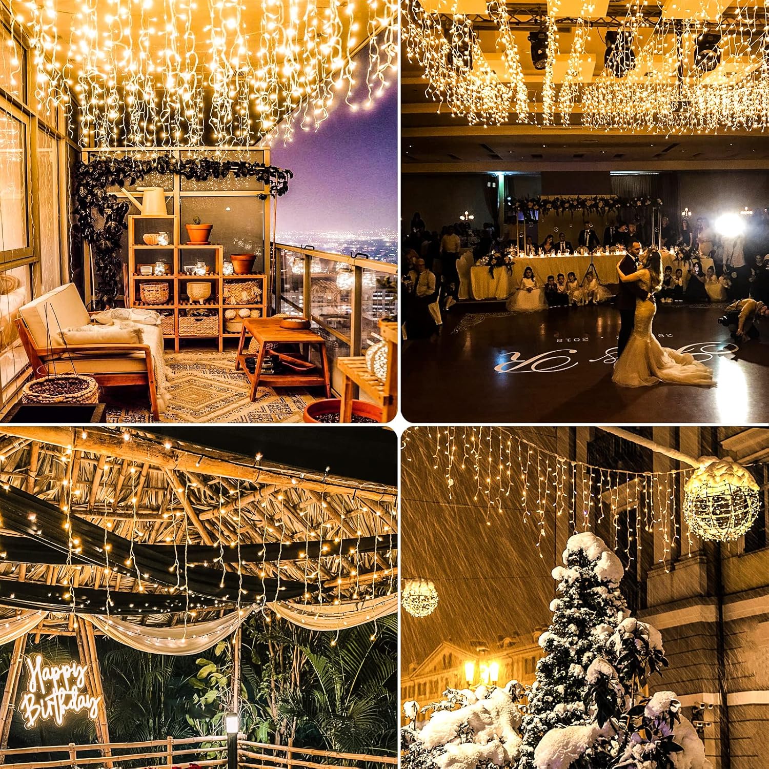 - [Waterproof&UL certified] The icicle lights are IP44 waterproof, which is perfect for outside decoration and can work normally even in wind, rain, freezing rain, heavy snow and freezing cold temperatures. These Christmas lights has approved UL Certification, output voltage is 29V, it's completely safe to touch. These led icicle lights are made of 100% premium copper wire and will not overheat even after prolonged use.