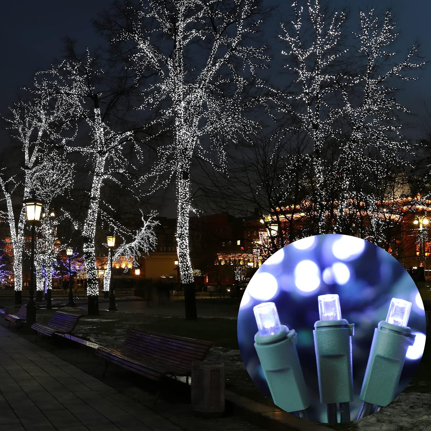 - UL Commercial Grade White Christmas Lights: UL listed; approved for indoor/outdoor, commercial grade 22AVG wire with high tensile strength for outdoor display.